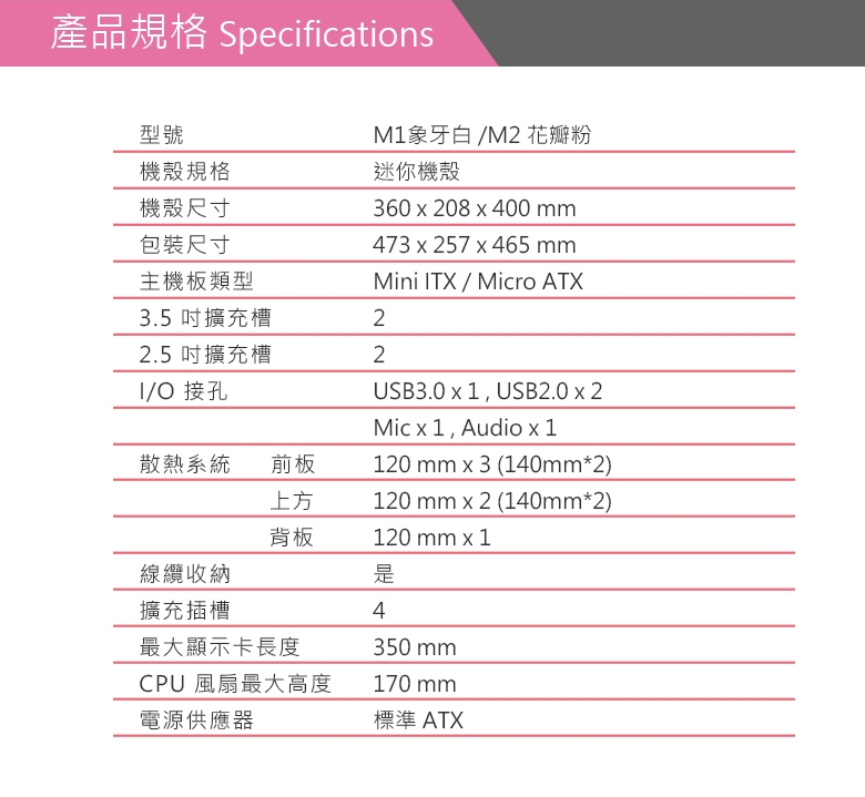亞碩 M1 象牙白 顯卡長35/CPU高17/側掀式玻璃側板/網孔面板/M-ATX
