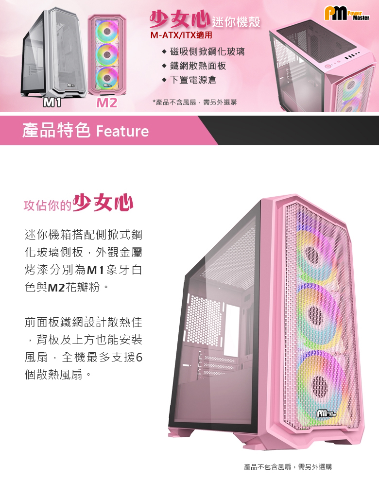 亞碩 M2 花瓣粉 顯卡長35/CPU高17/側掀式玻璃側板/網孔面板/M-ATX