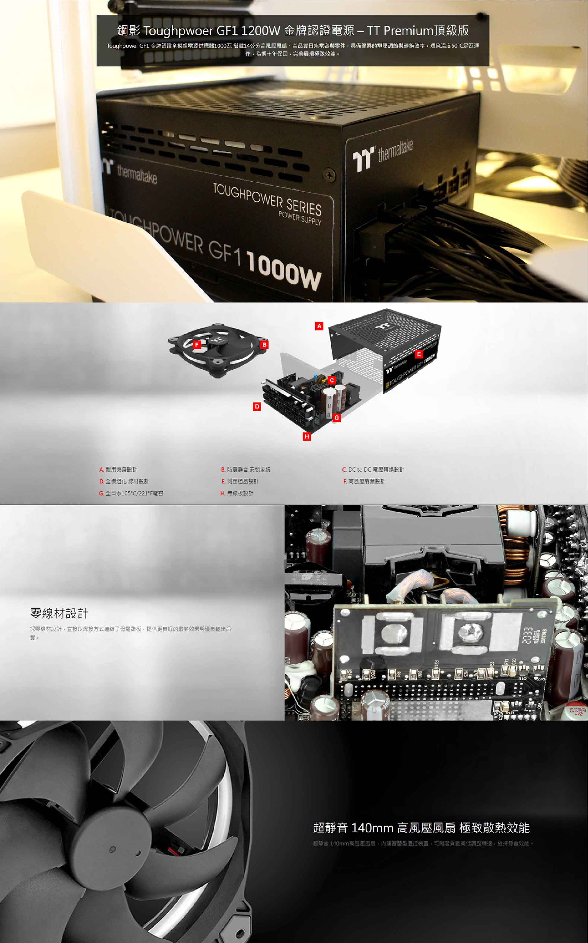 曜越 鋼影 Toughpower GF1 1000W 雙8/金牌/全模組/10年保固/14公分風扇/智慧停轉/智慧溫控/Corsair RMX 同架構 CWT代工