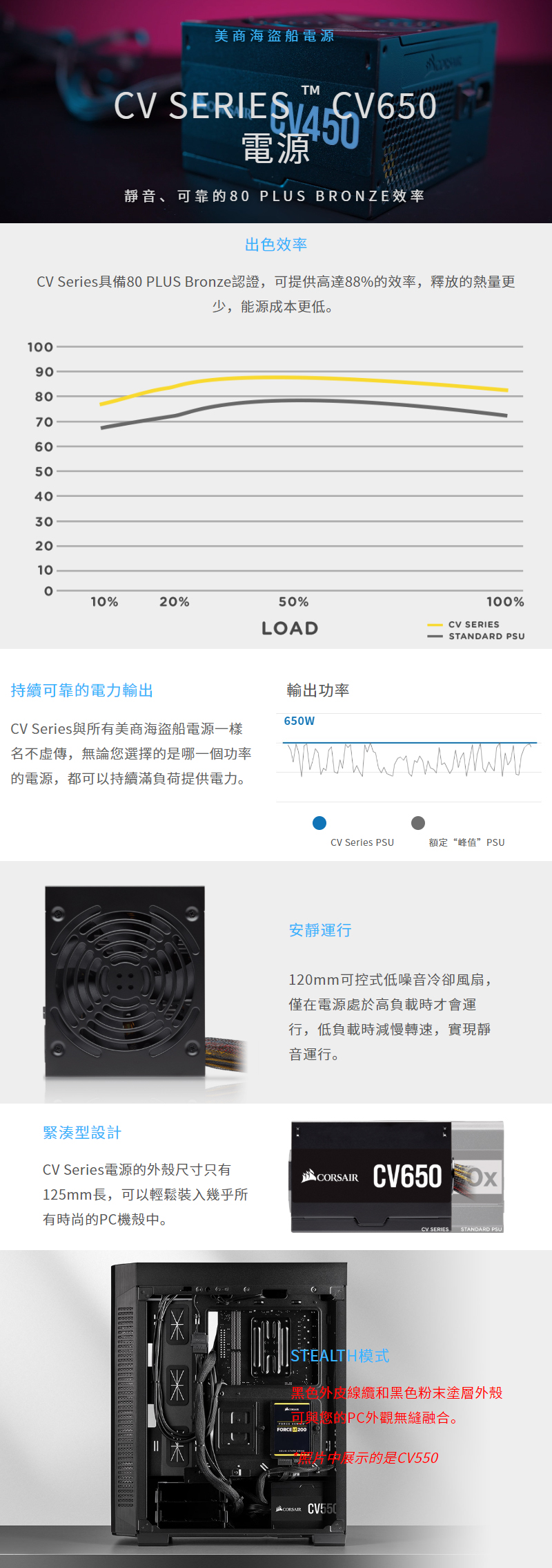 • 海盜船 CV650(650W) 銅牌/3年保固(CP-9020211)