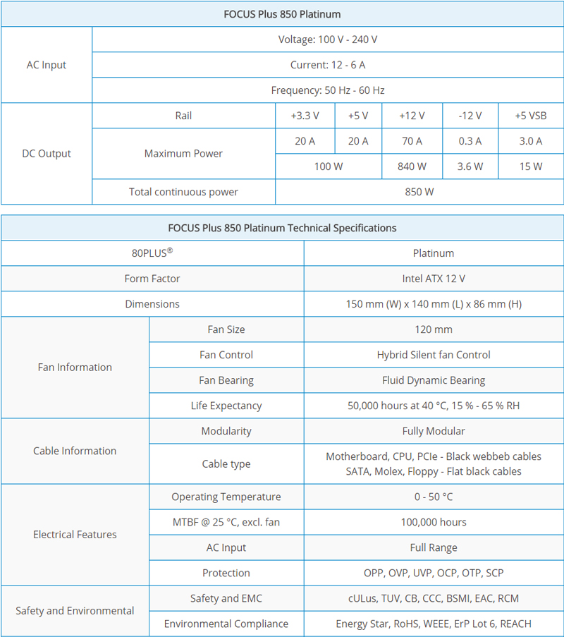 海韻 Focus SSR-850PX(850W)雙8/白金/全模/10年保/CPU主線:18AWG
