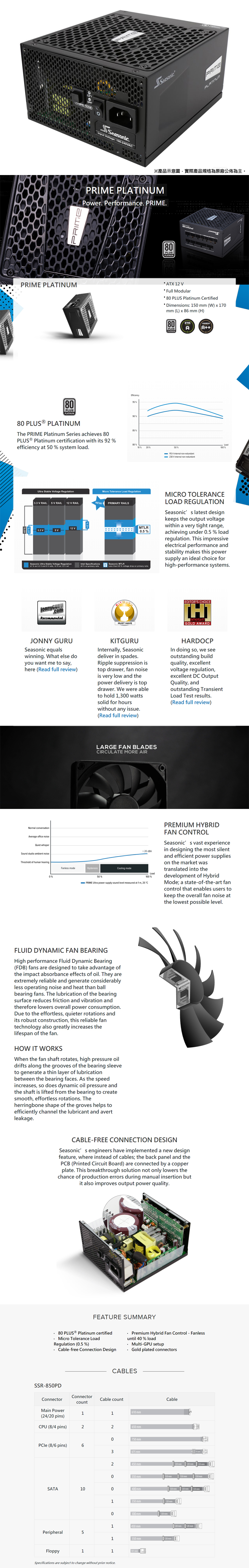 海韻 PRIME SSR-850PD(850W)雙8/白金/全模/12年保/CPU主線:18AWG