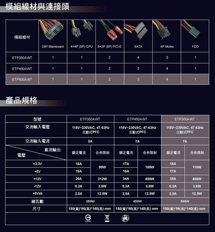 【活動】保銳 安耐美 銅霸 500W/銅牌/全日系電容/3年保/CPU主線:18AWG