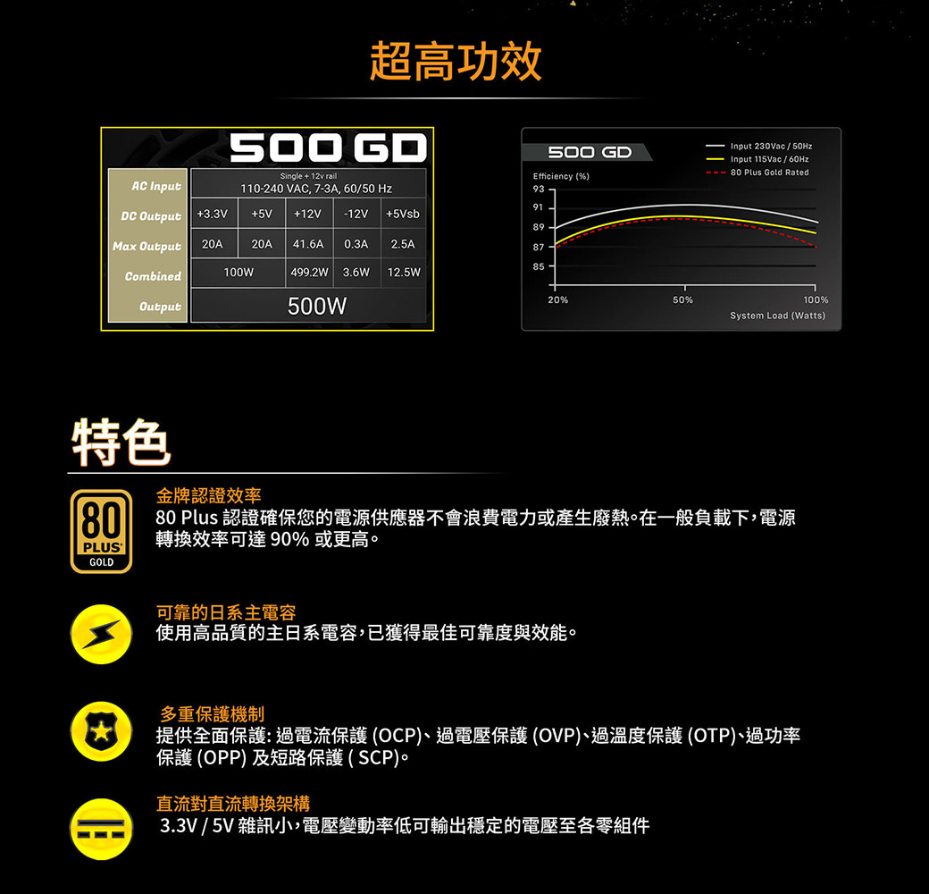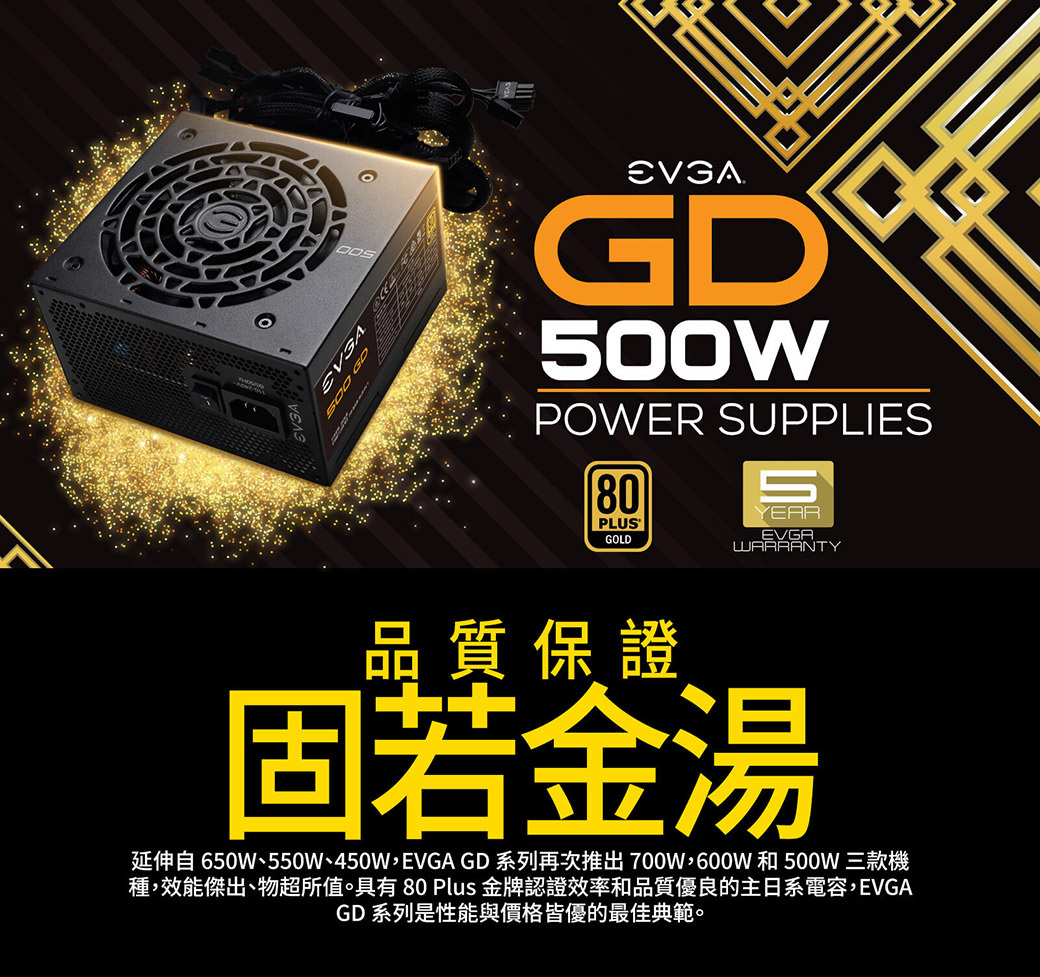 • EVGA 500W GD/金牌/直出線/主日系/DC-DC/5年保