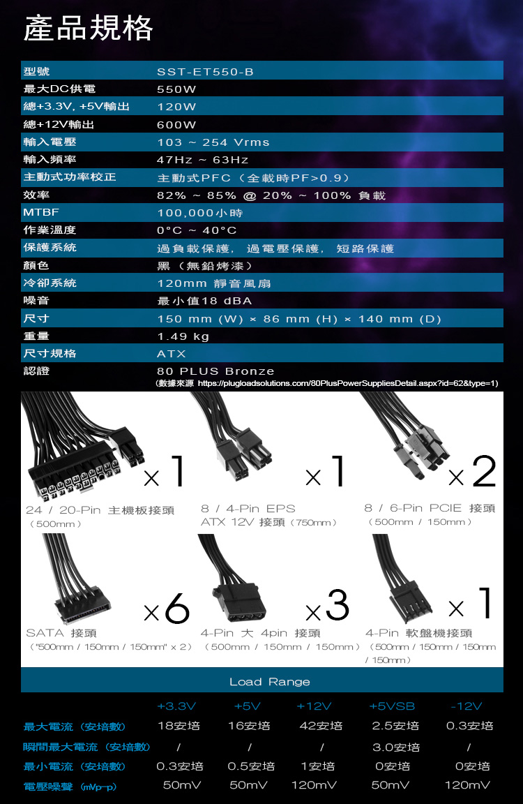 銀欣 550W 雙8/銅牌/直出線/扁平線/5年保(ET550-B)