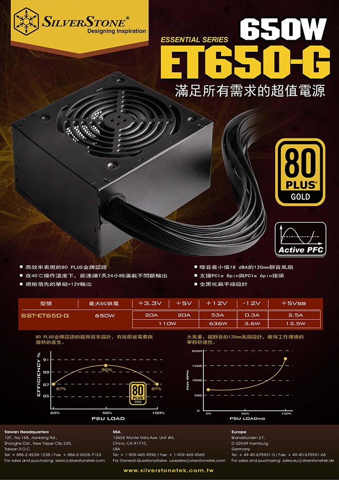 銀欣 650W 雙8/金牌/直出線/主日系/扁平線/5年保(ET650-G)