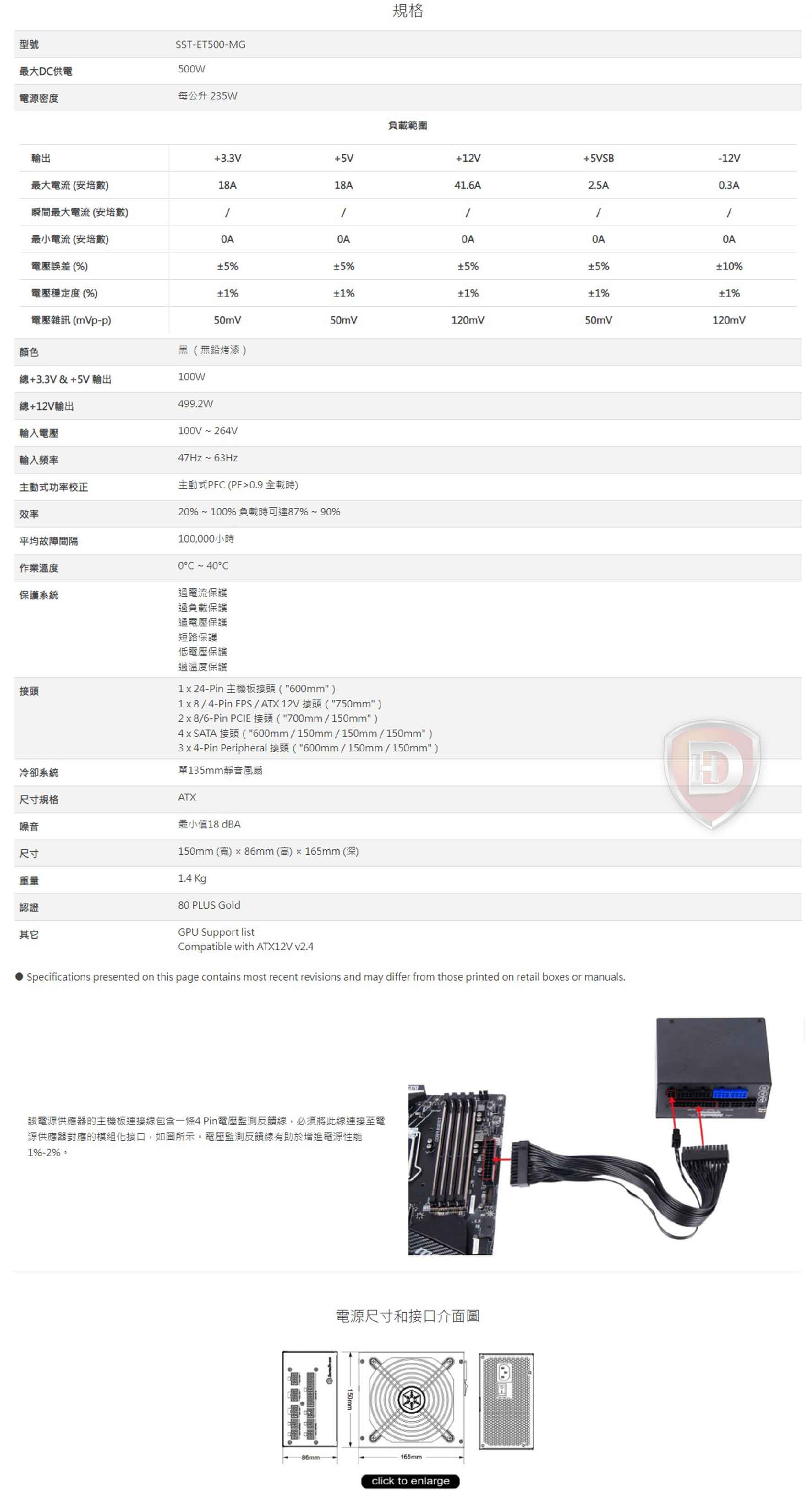 銀欣 500W 雙8/金牌/全模組/主日系/扁平線材/5年保(ET500-MG)