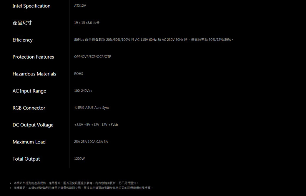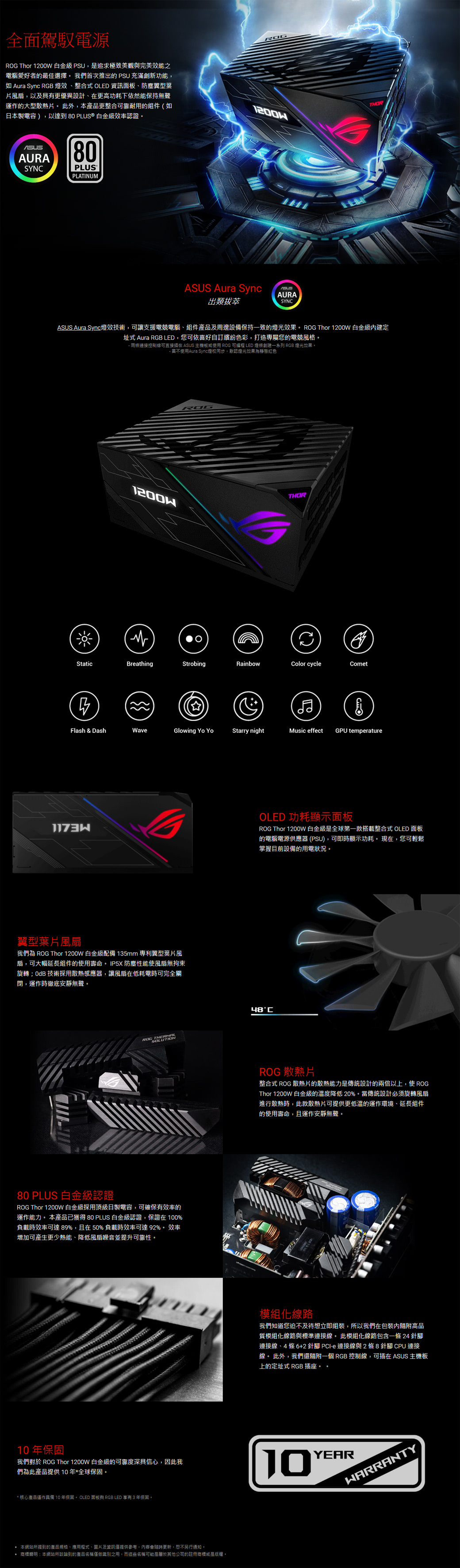 ROG THOR 1200P(1200W) 雙8/白金/OLED瓦數顯示/AURA SYNC/10年保