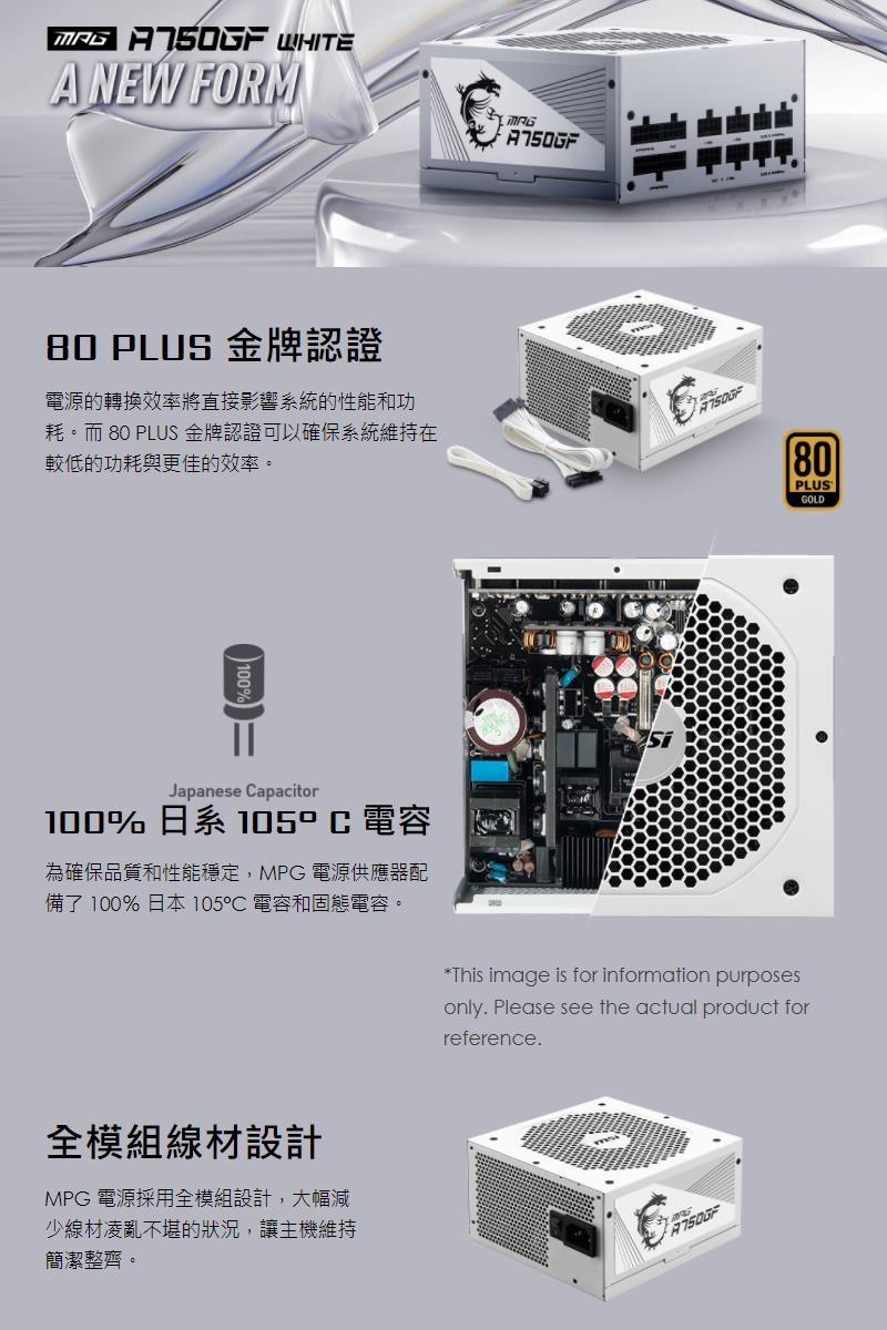 微星 MPG A750GF WHITE 750W 雙8/金牌/全模組/LLC+DC-DC/全日系/10年保