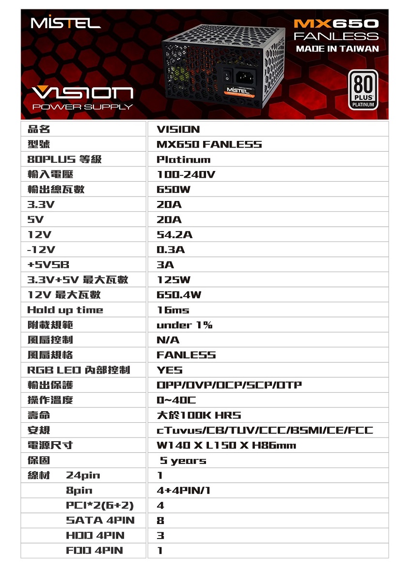 • Mistel MX650 Fanless 白金