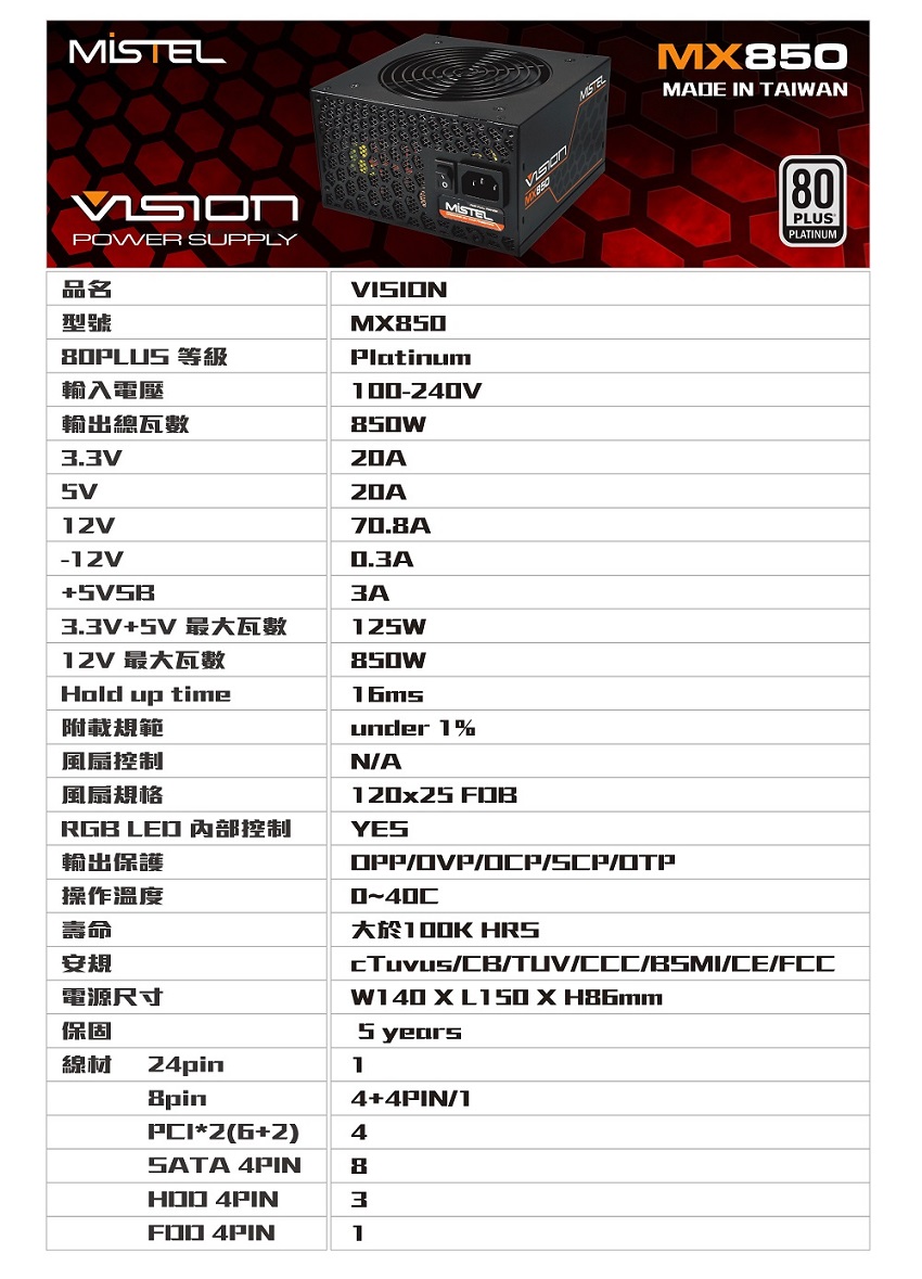 Mistel MX850 白金/全模組/主板連動RGB/五年