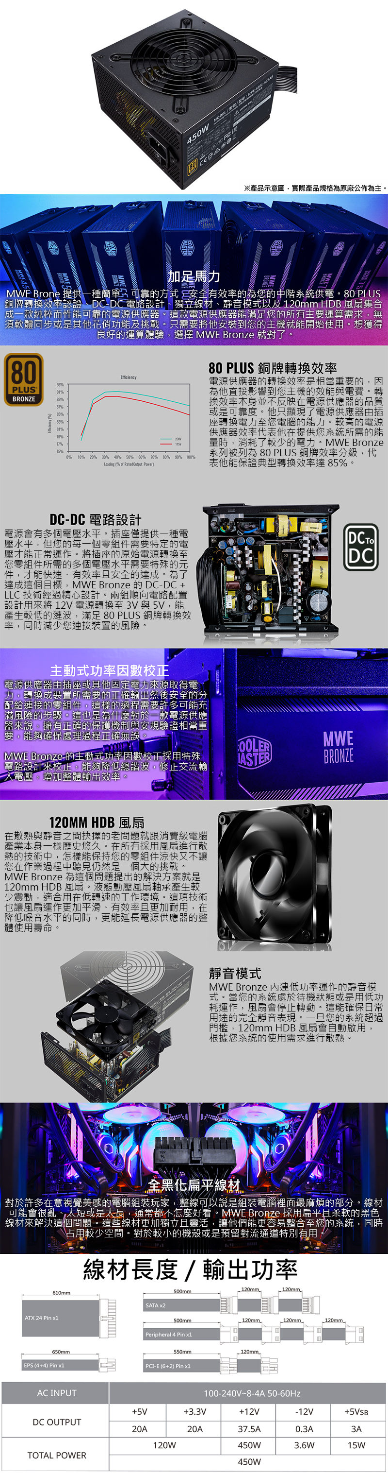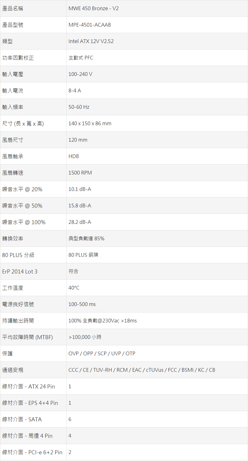 酷碼 MWE BRONZE V2 450W/銅牌/5年保/CPU主線:18AWG