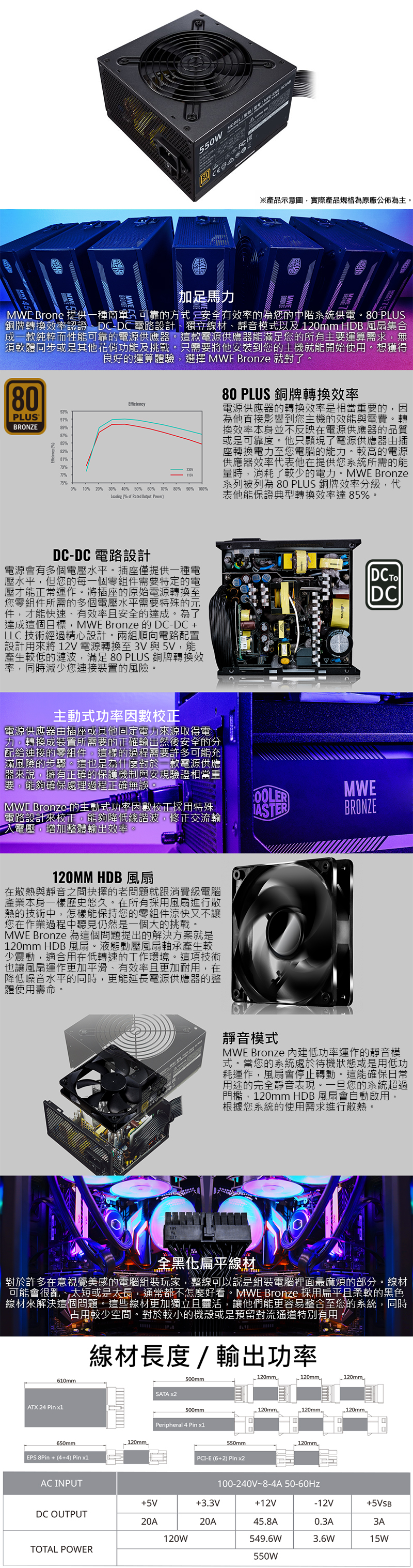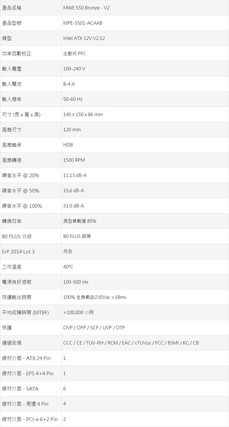酷碼 MWE BRONZE V2 550W/銅牌/5年保/CPU主線:18AWG