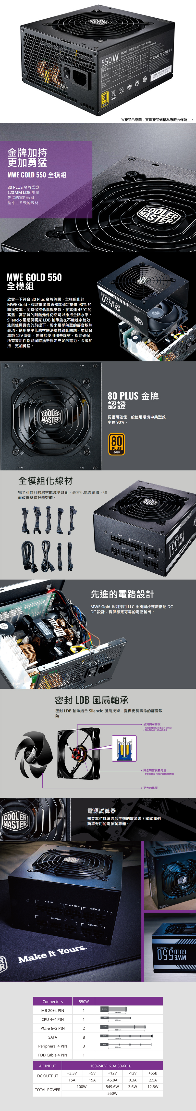 酷碼 MWE GOLD 550W 金牌/全模組/單路12V/DC-DCLCC/CPU主線:18AW