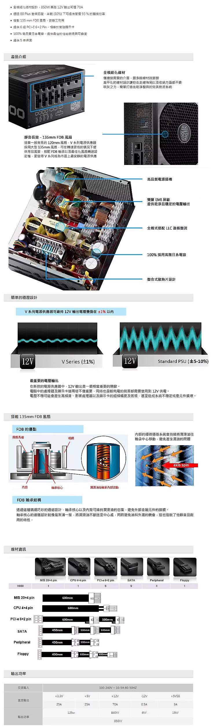 CoolerMaster V850W 80Plus 金牌全模組電源供應器