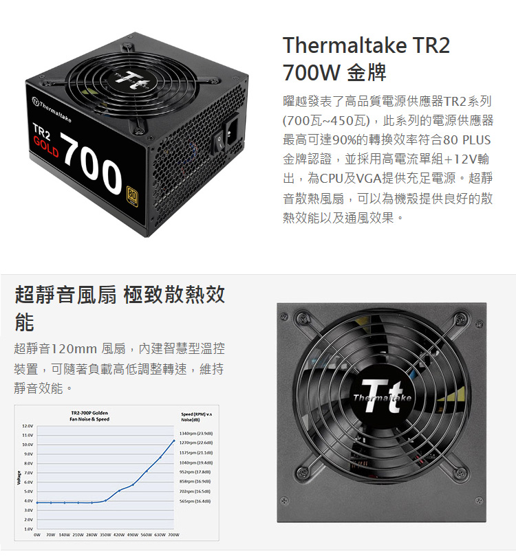 曜越 TR2 700W/金牌/全日系電容/5年保固/CPU主線:18AWG:裸銅