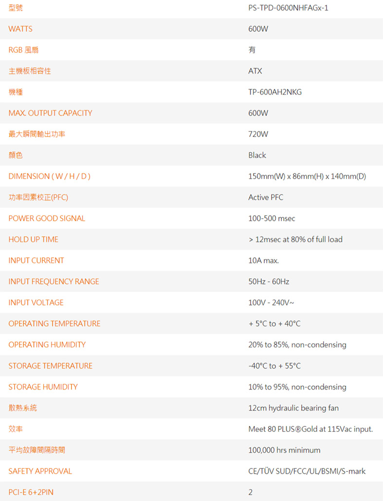 • 曜越 Toughpower GX1 RGB 600W