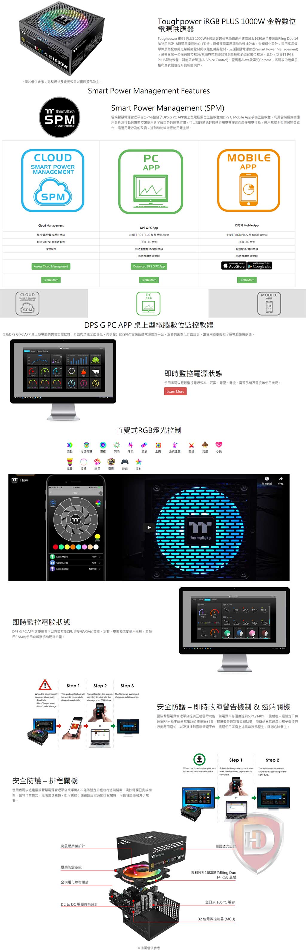 曜越 Toughpower iRGB PLUS 1000W 雙8/金牌/數位電源/全日系/全模/10年/DC-DC/主線:18AWG