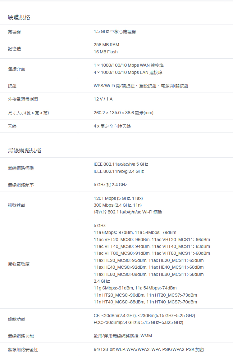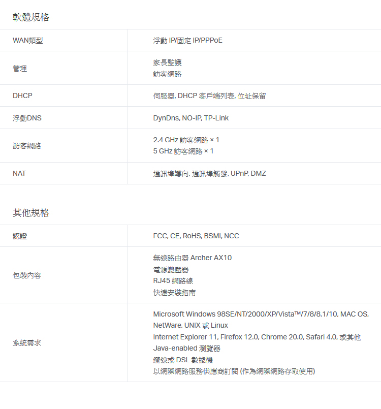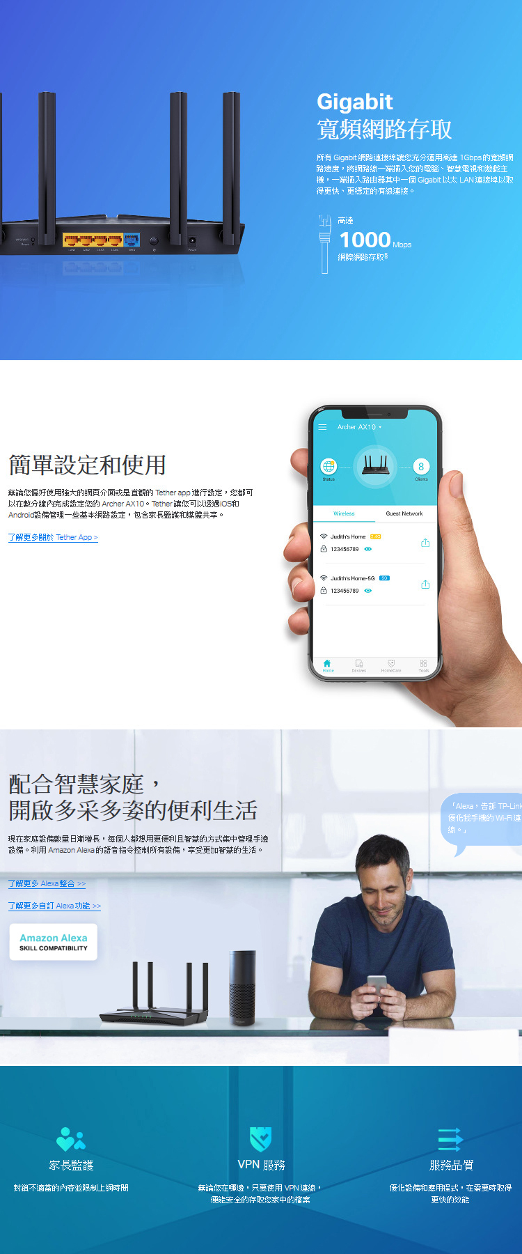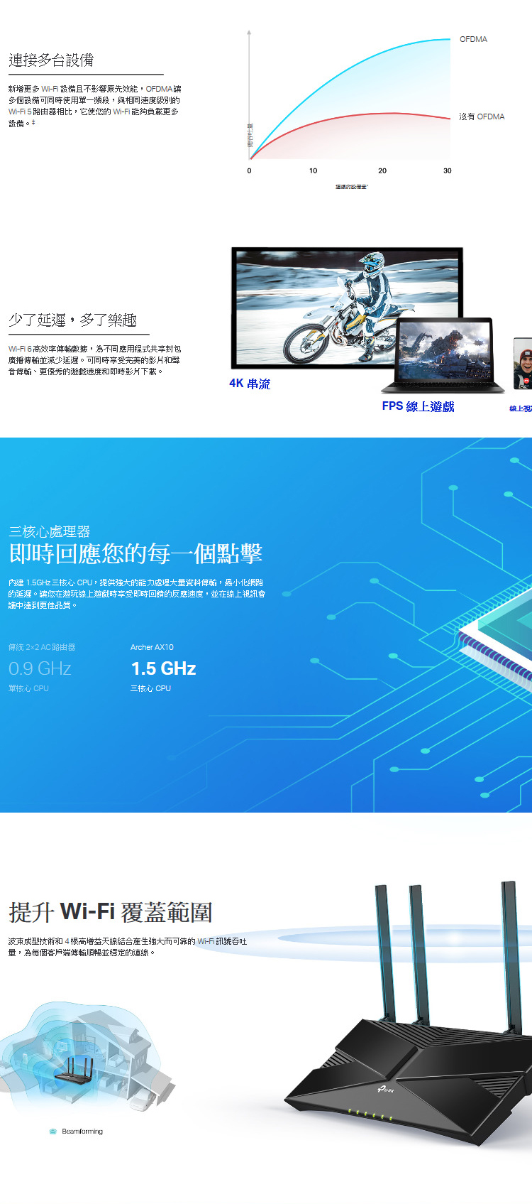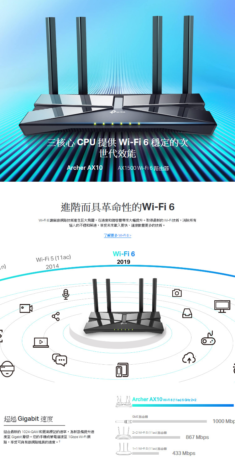 TP-LINK Archer AX10 (AX1500/雙頻/4x天線/4x1GbE/支援OneMesh)