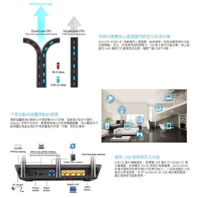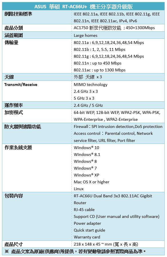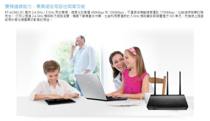 華碩 RT-AC66U+ (AC1750/雙頻/三天線/4埠Gigabit/三年換新)