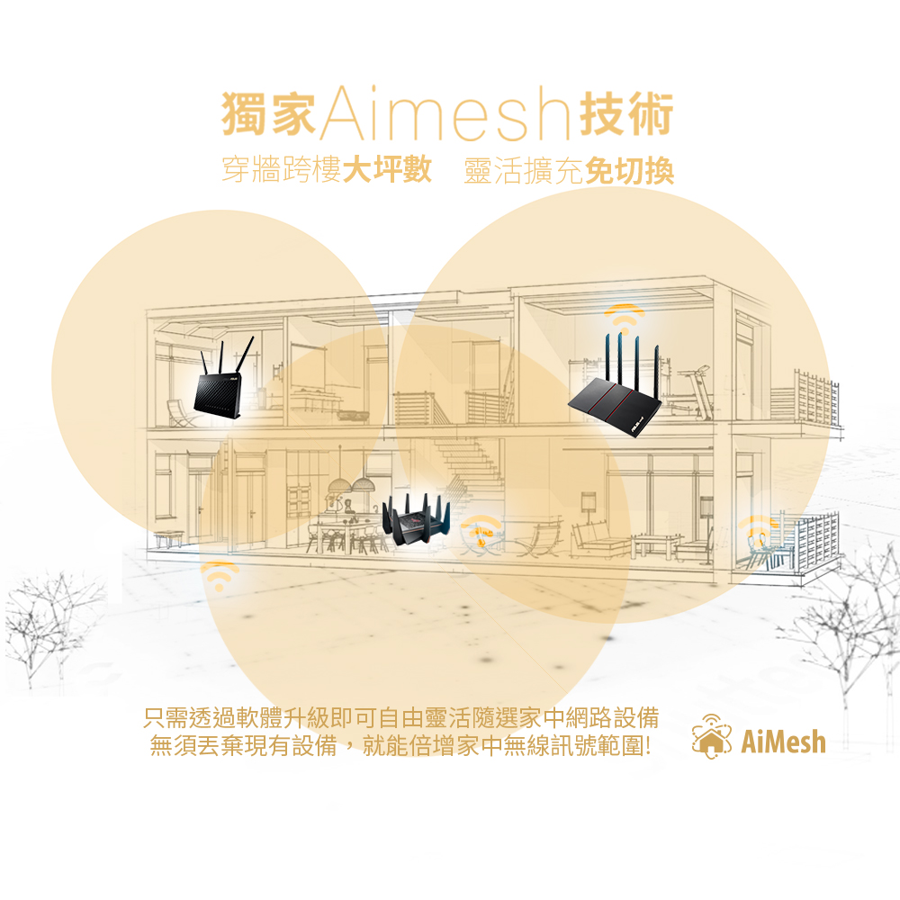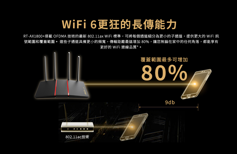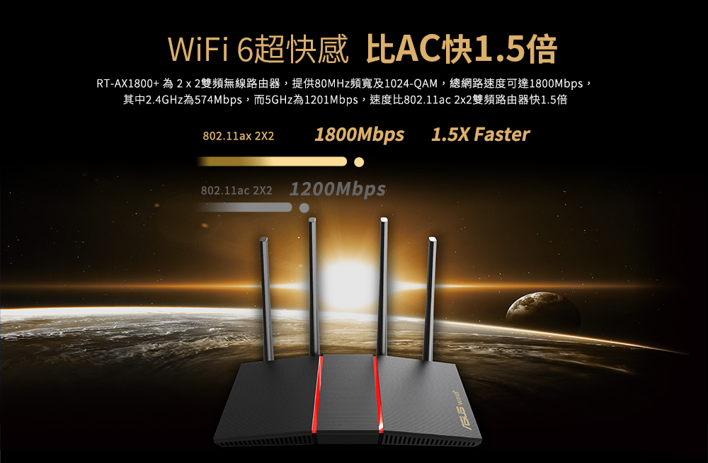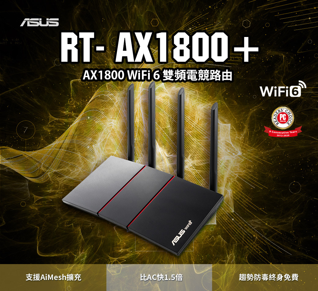 華碩 RT-AX1800 Plus (AX1800/雙頻/4x高功率天線/4x1GbE/支援AiMesh/趨勢防毒)