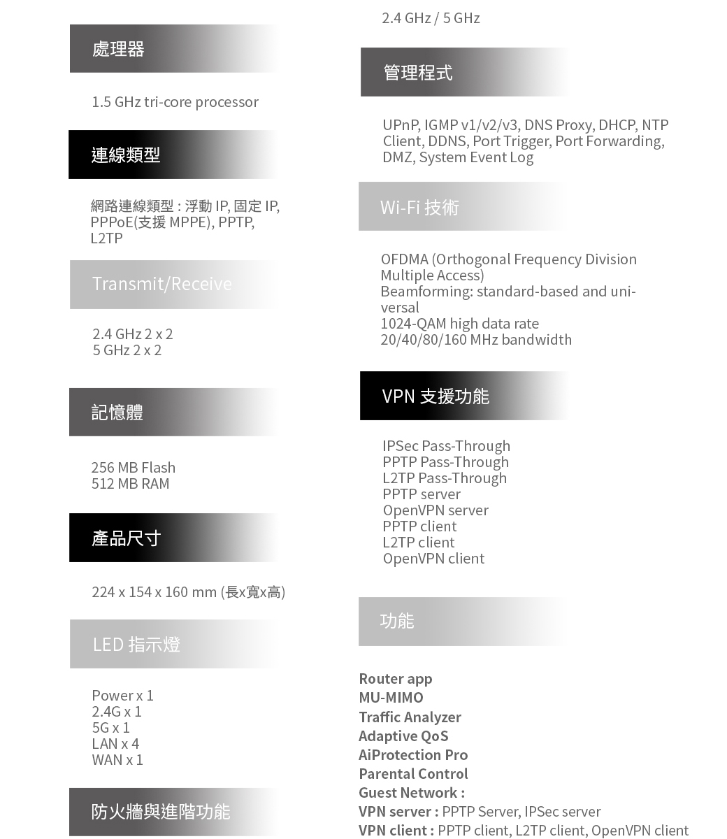 華碩 RT-AX3000 (AX3000/雙頻/4x天線/4x1GbE/支援AiMesh)