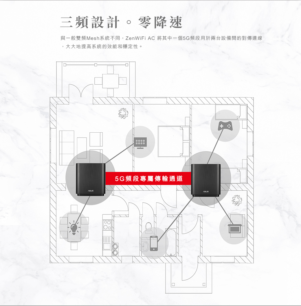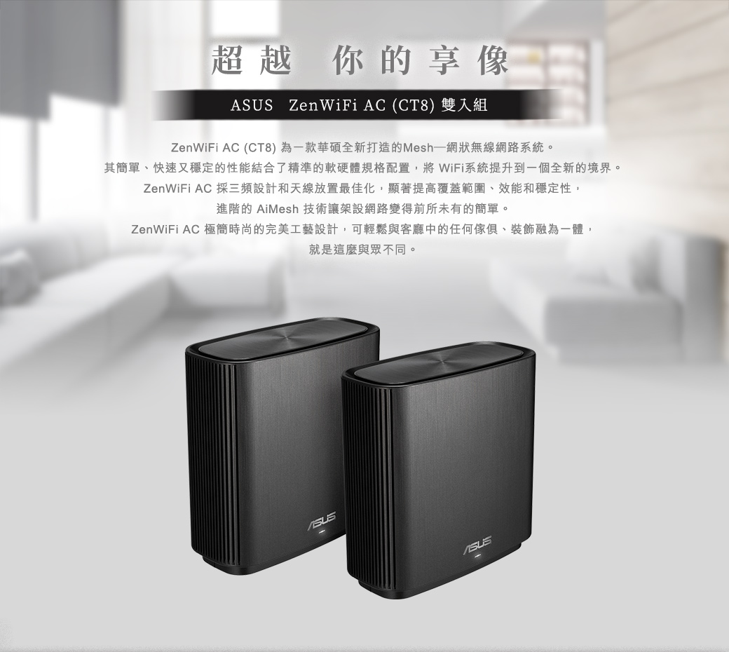 華碩 ZENWIFI CT8 【4008671733M】AC三頻/隱藏6天線/3*Gigabit埠