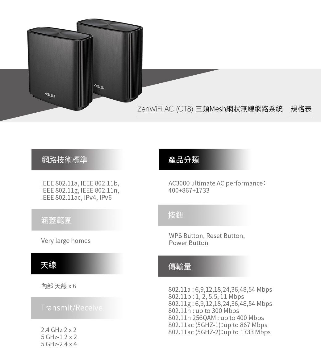 • 華碩 ZENWIFI CT8 【4008671733M】AC三頻