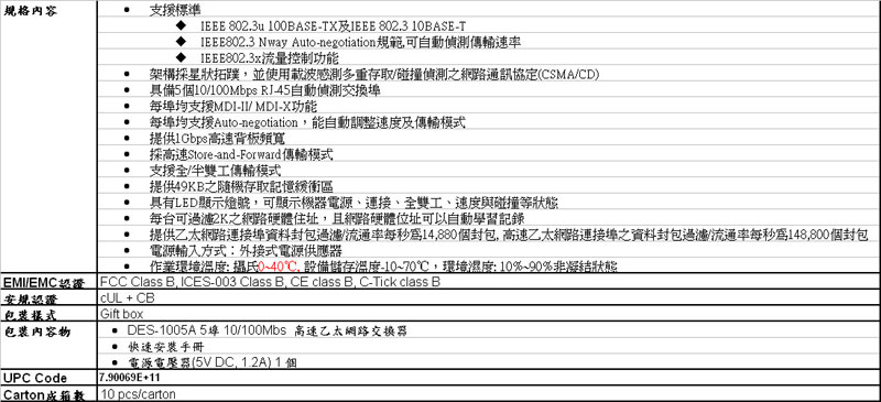 • D-Link友訊 DES-1005A 5埠100M節能型交換器