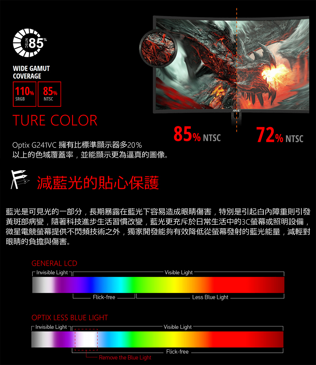 MSI G241VC(1A1H/1ms/VA曲面/75Hz/無喇叭/FreeSync)*不閃頻.低藍光