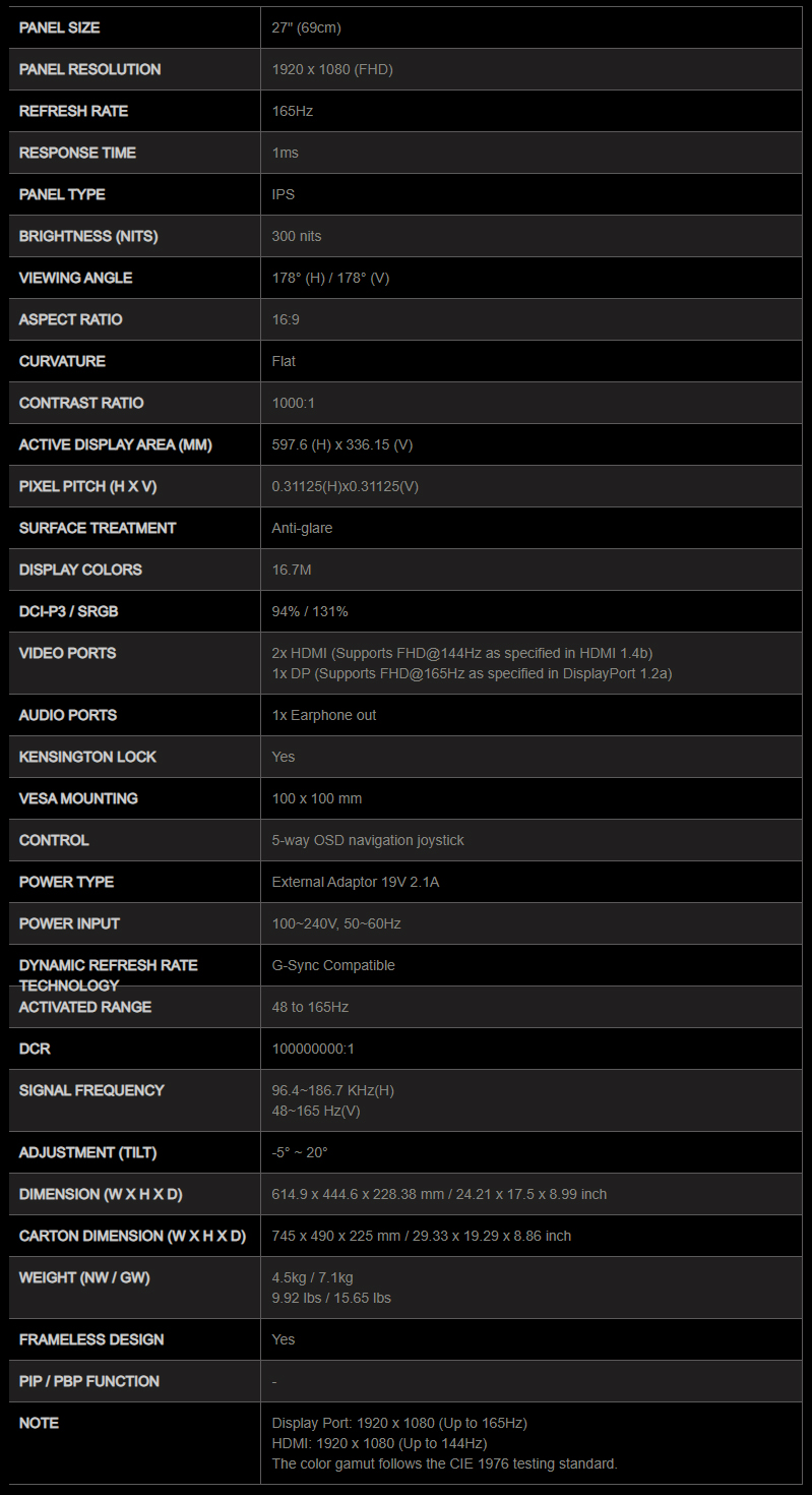 MSI Optix G273(2H1P/1ms/IPS/165Hz/無喇叭/G-SYNC兼容) 平面電競螢幕
