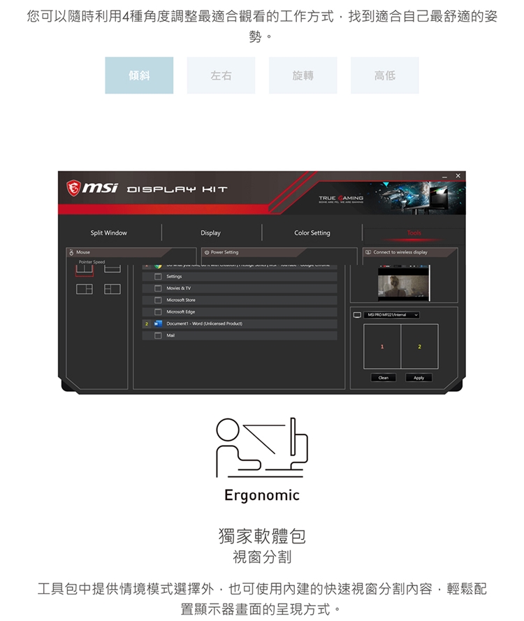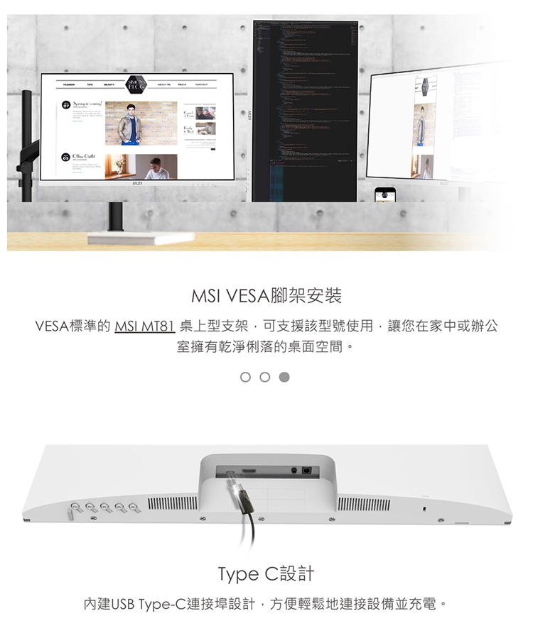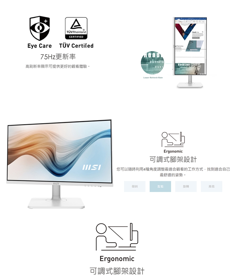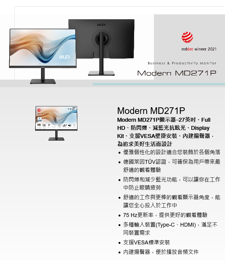 MSI MD271P(Modern/1H1C/5ms/IPS/有喇叭) 美型.可調整高低.旋轉