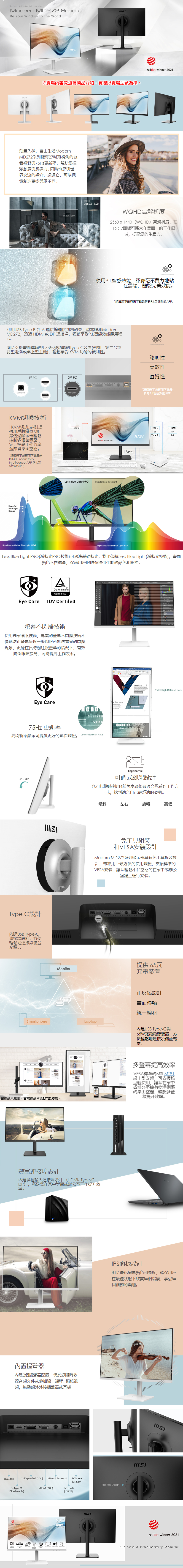 MSI MD272QP(Modern/1H1P1C/4ms/IPS/含喇叭)美型.可調整高低.旋轉
