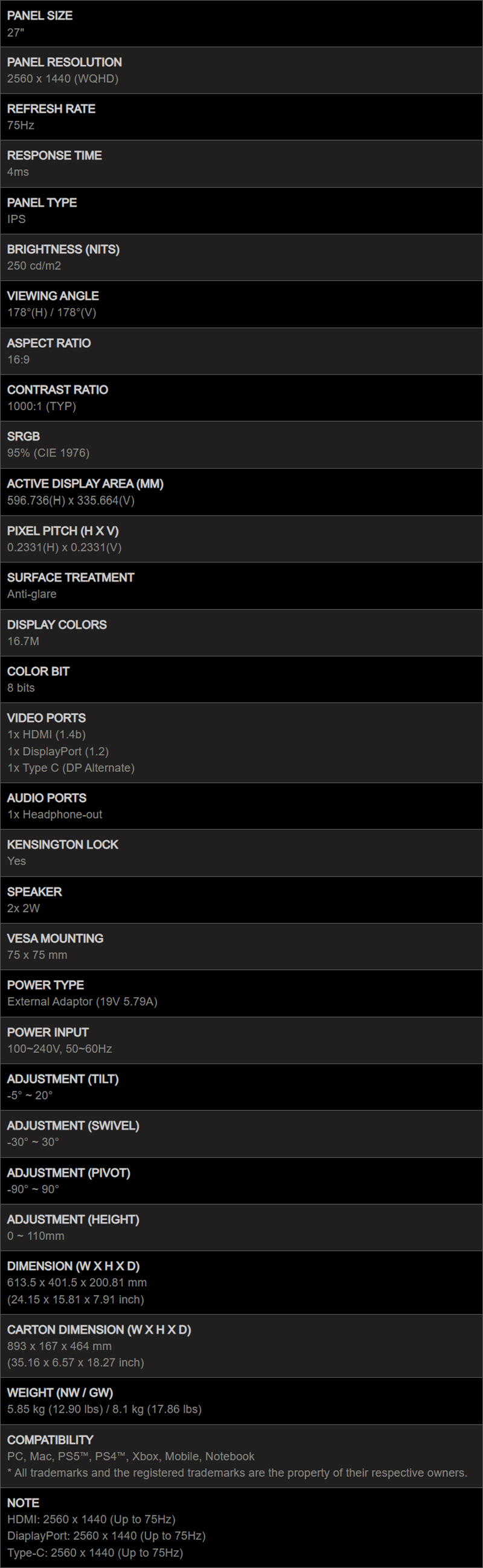 支援DP、HDMI、Type-C