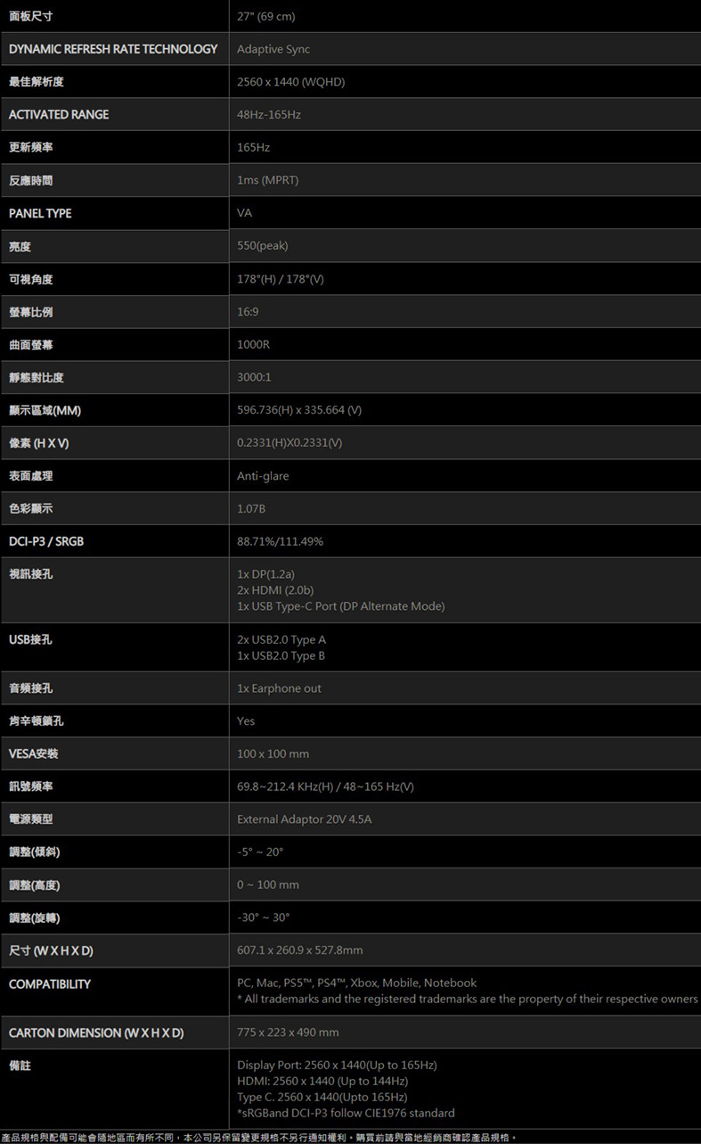 螢幕商品不便退換貨,敬請謹慎評估再購買呦