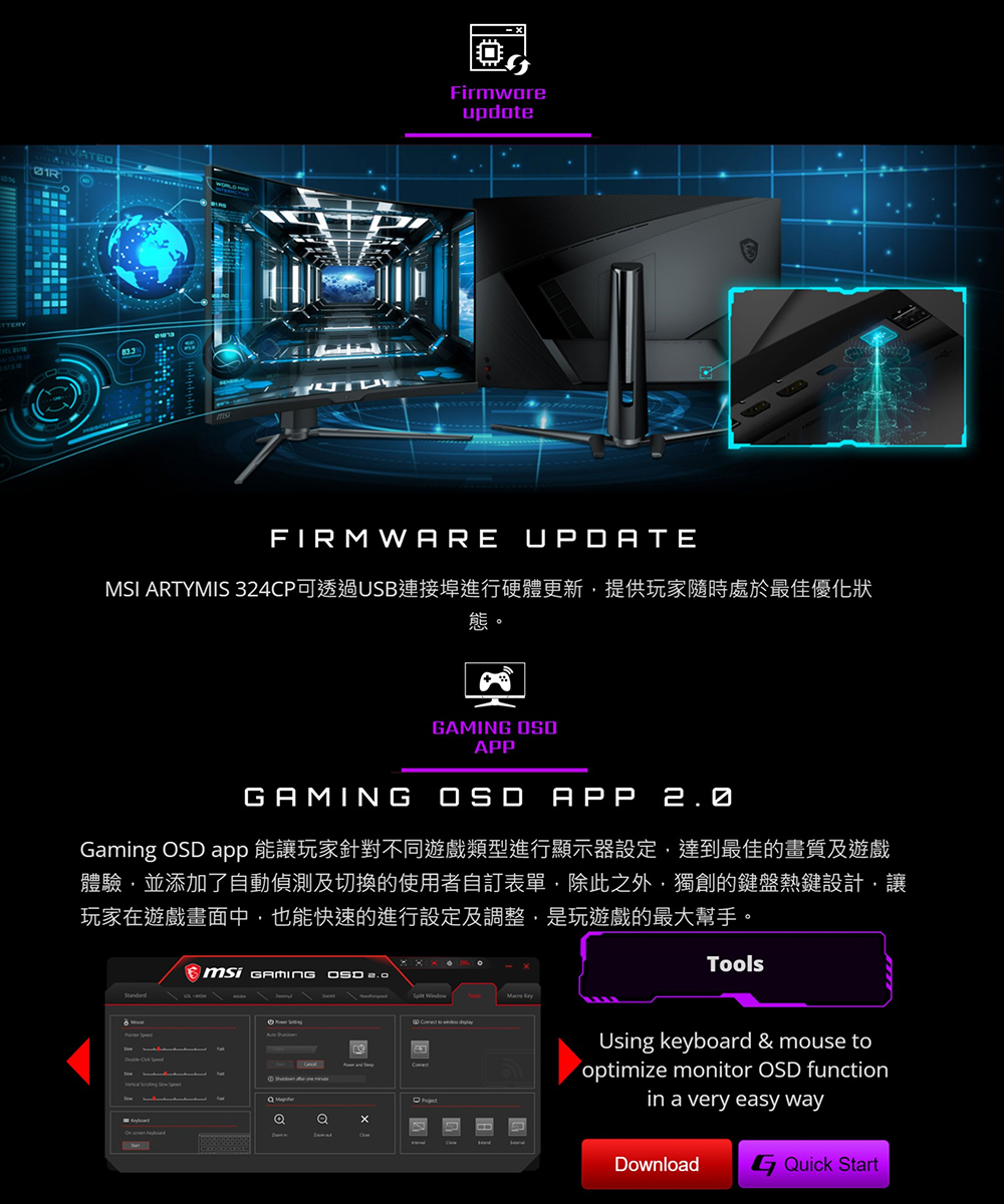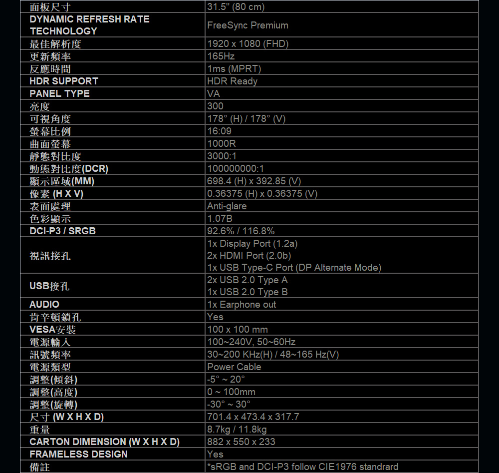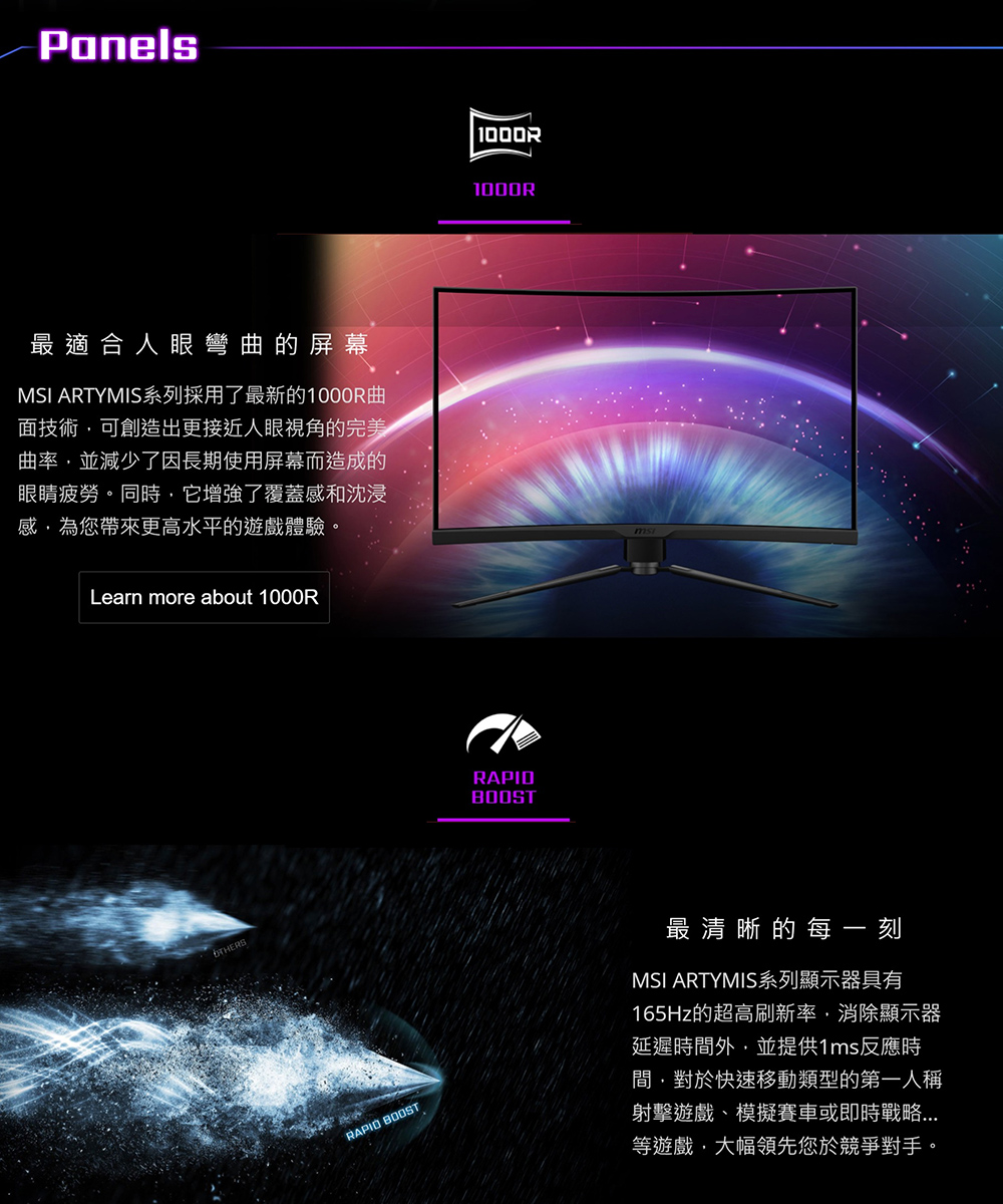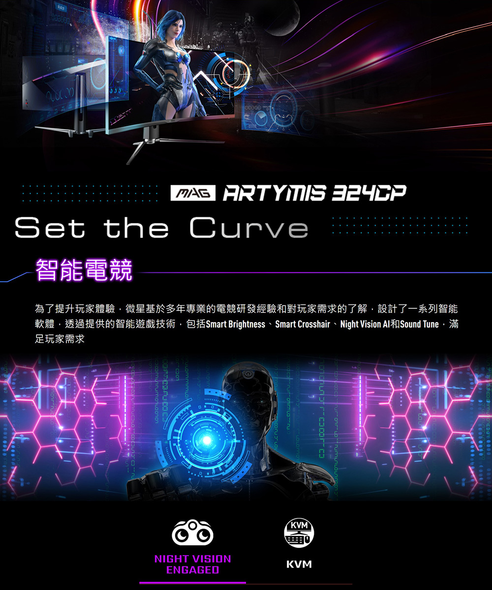 MSI MAG ARTYMIS 324CP(2H1P1C/1ms/VA曲面/165Hz/無喇叭/FreeSyn