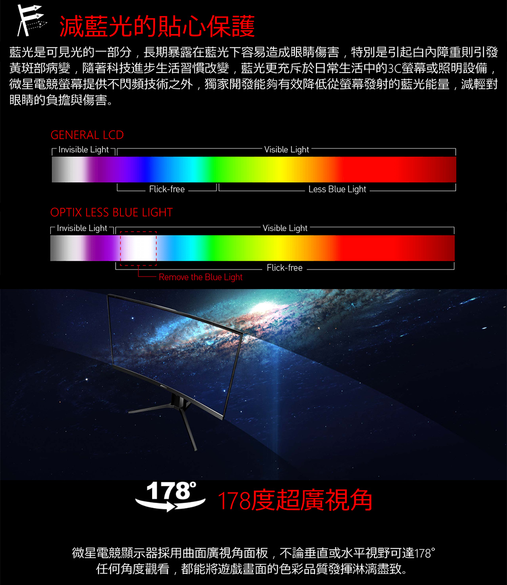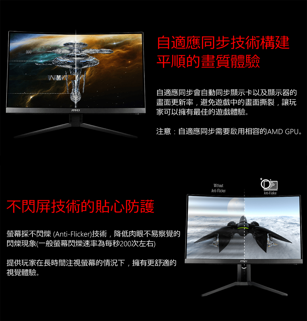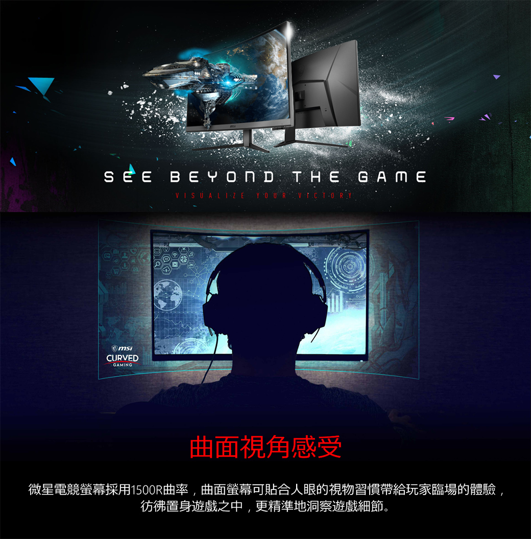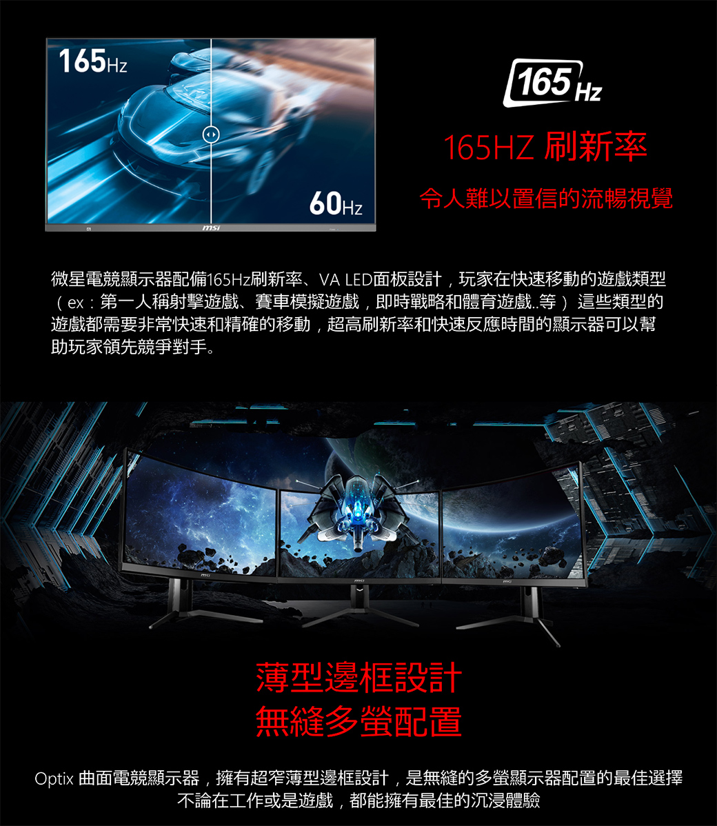MSI G32C4(2H1P/1ms/VA曲面/165Hz/無喇叭/FreeSync)不閃.低藍.無框