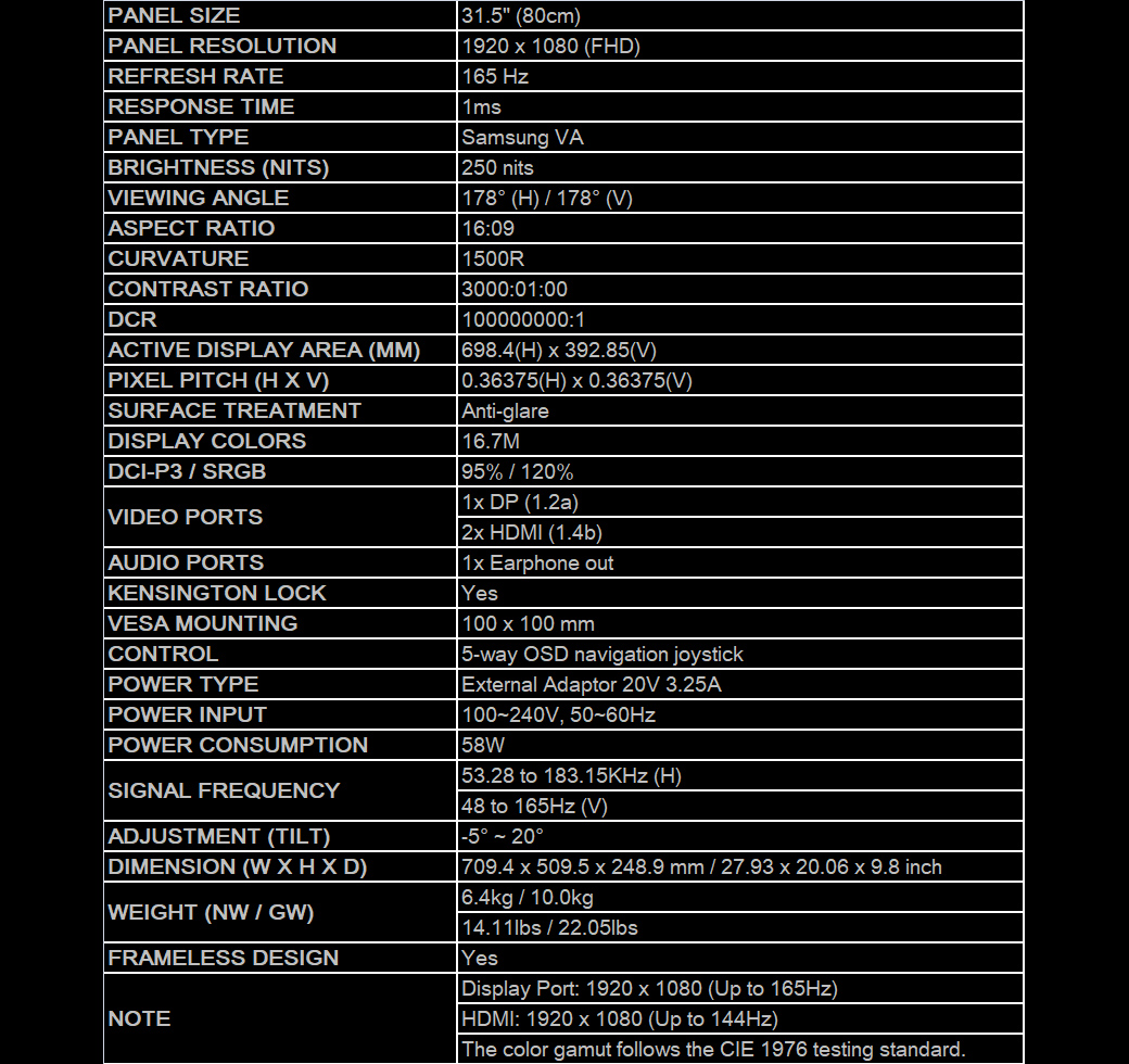 廣視角無邊框|HDR| FreeSync│165Hz/1ms|Type C