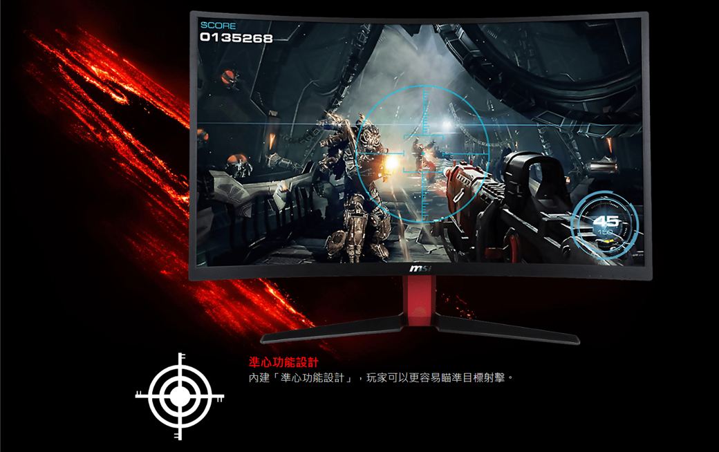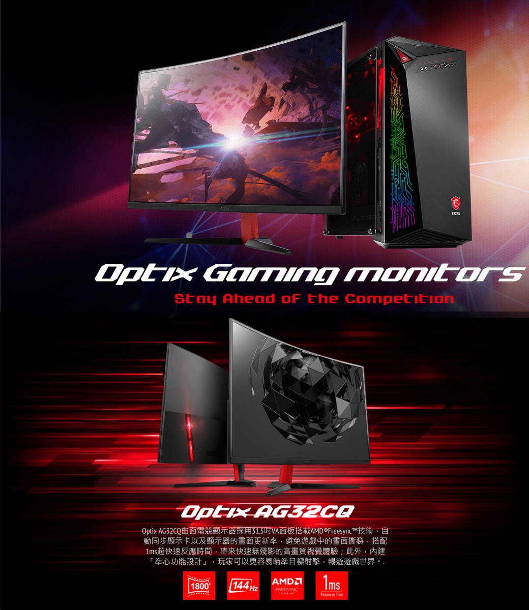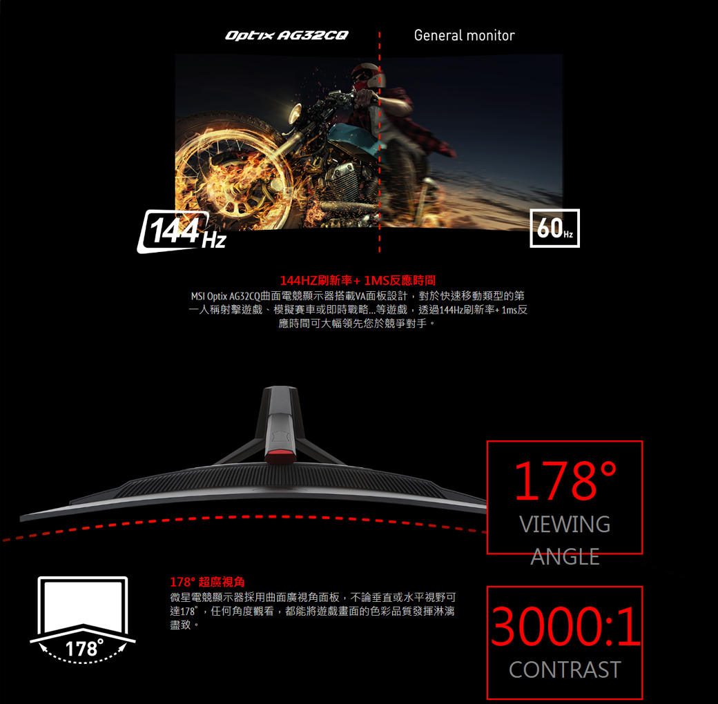 MSI AG32CQ(1D1H1P/1ms/VA曲面/144Hz/無喇叭/FreeSync)