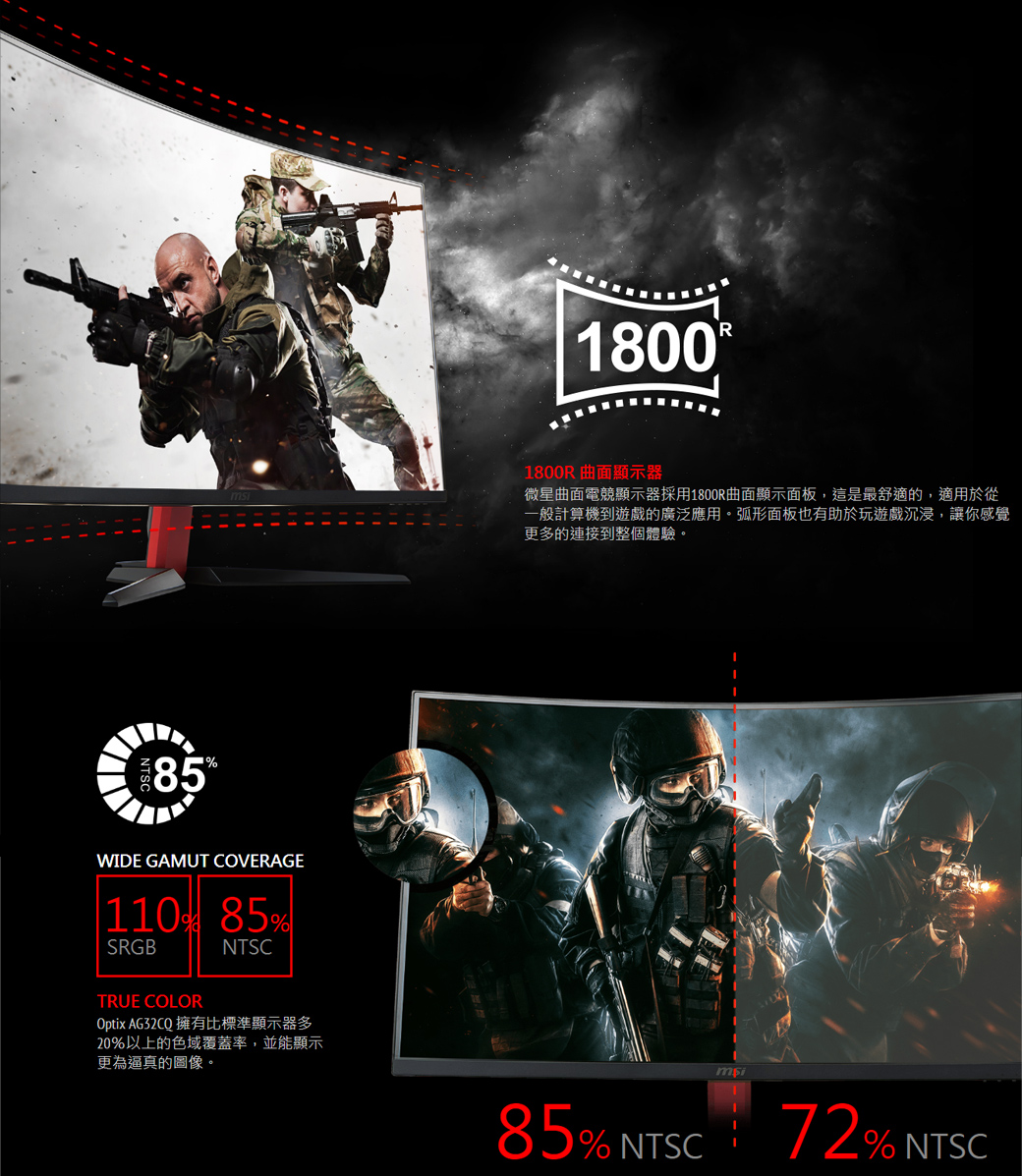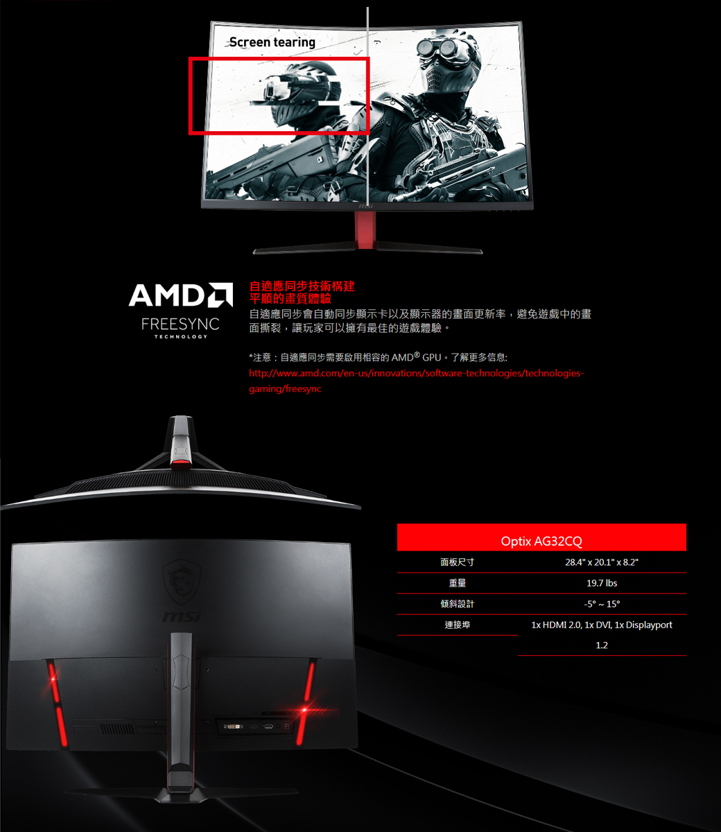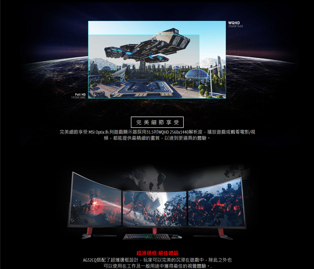 MSI AG32CQ(1D1H1P/1ms/VA曲面/144Hz/無喇叭/FreeSync)