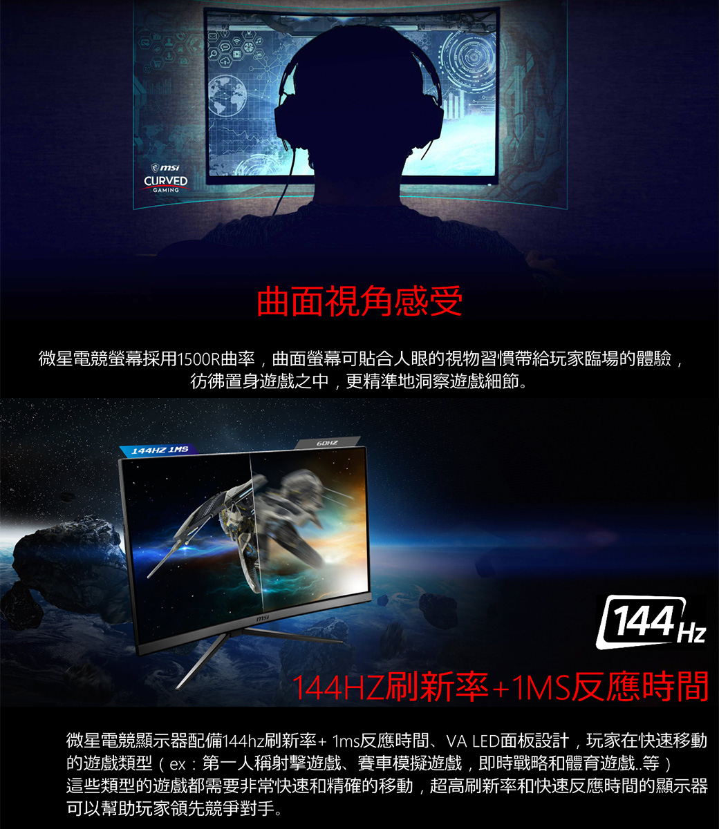 廣視角曲面│AMD FreeSync│144Hz│2K