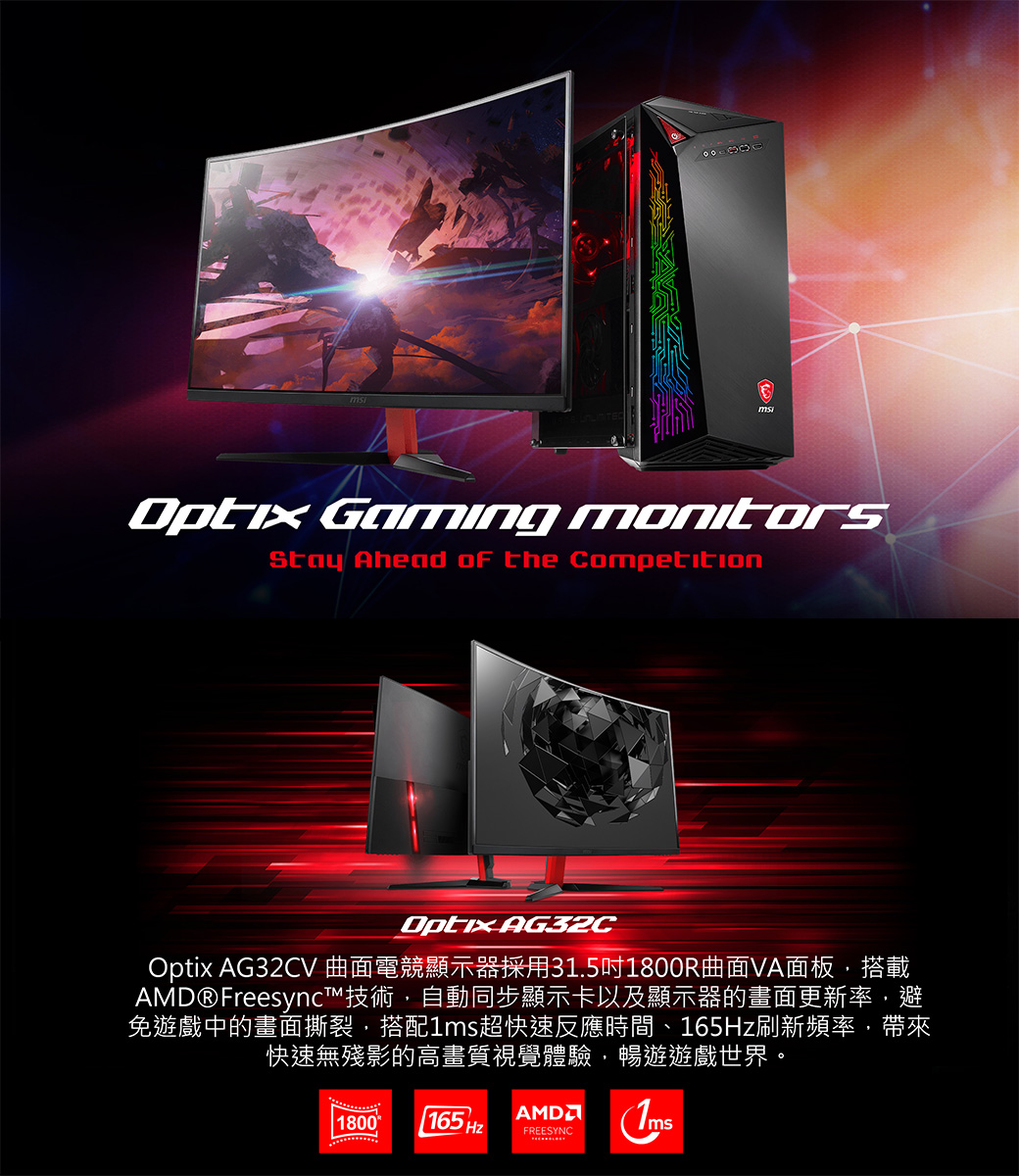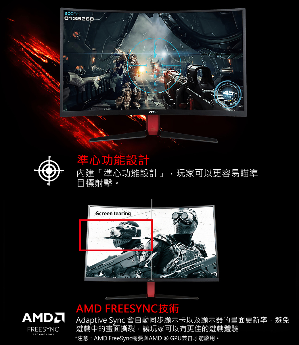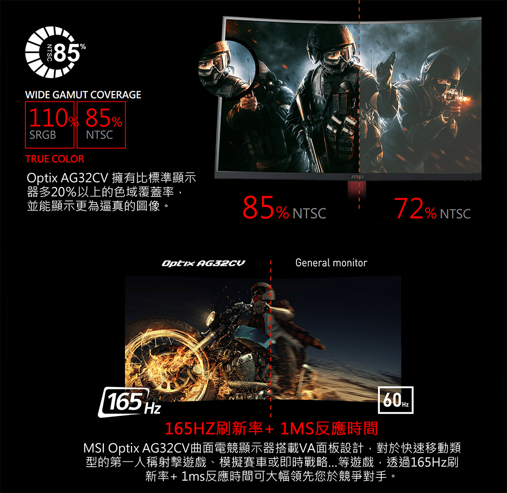 MSI AG32CV(1D1H1P/1ms/VA曲面/165Hz/無喇叭/FreeSync)不閃.低藍