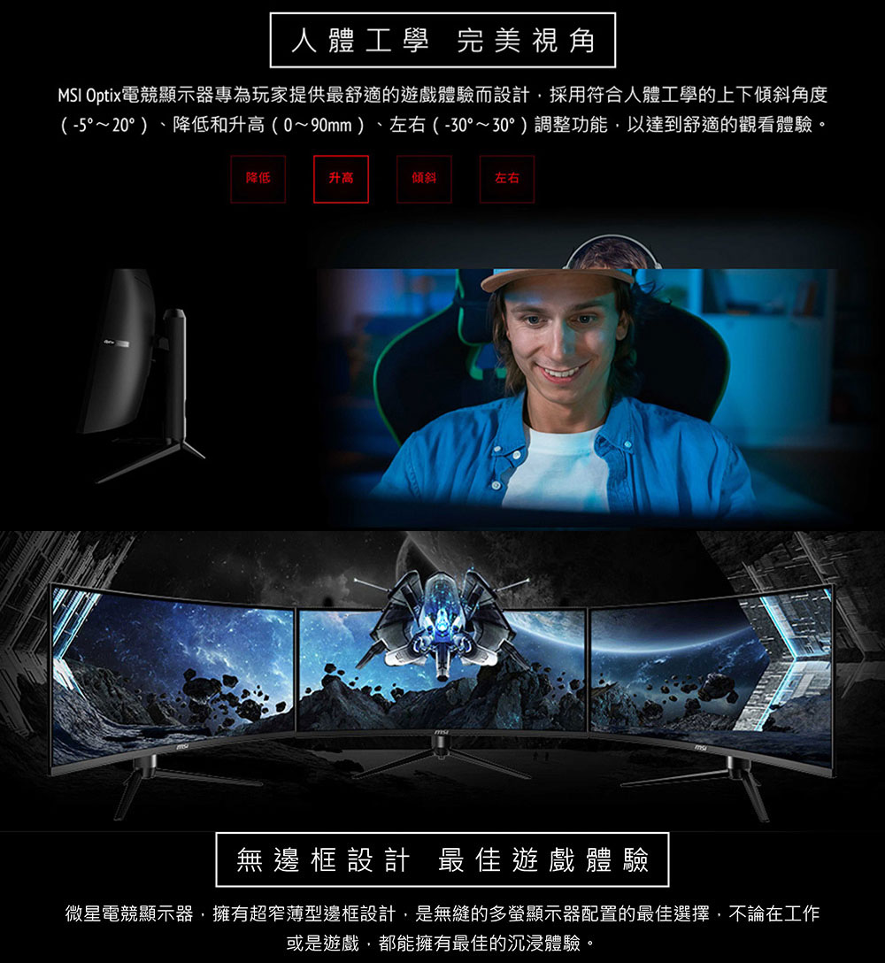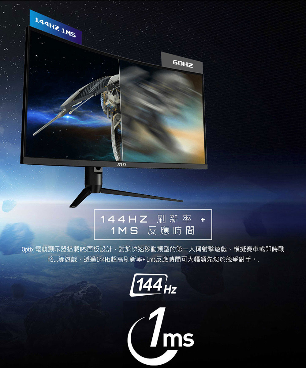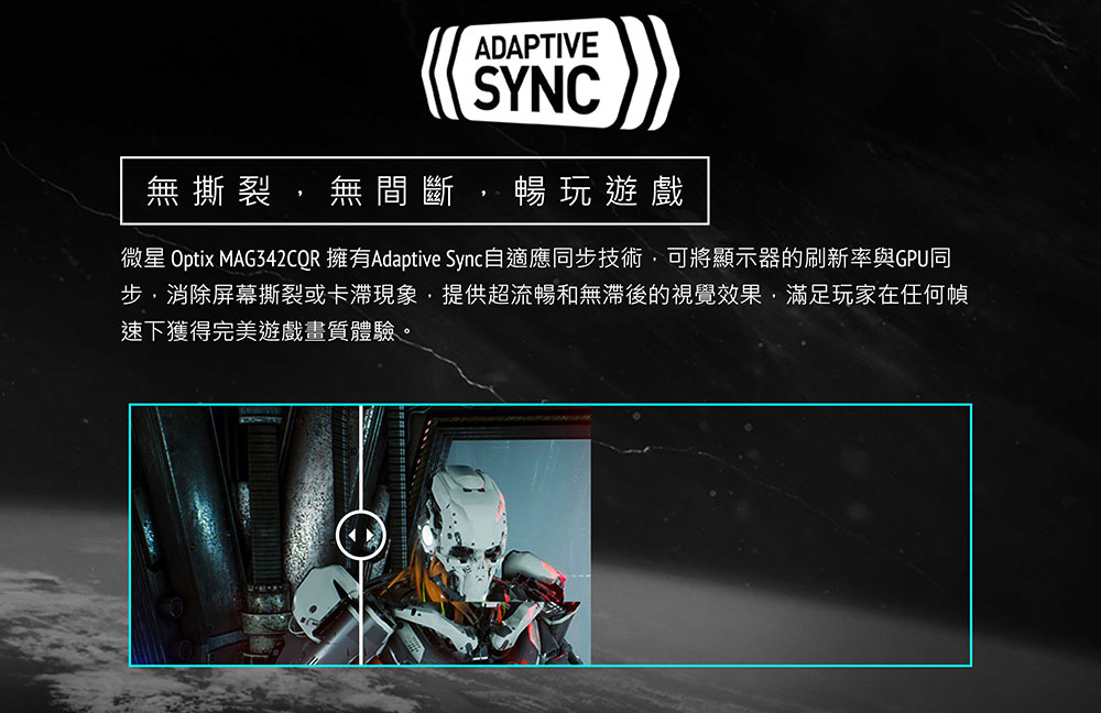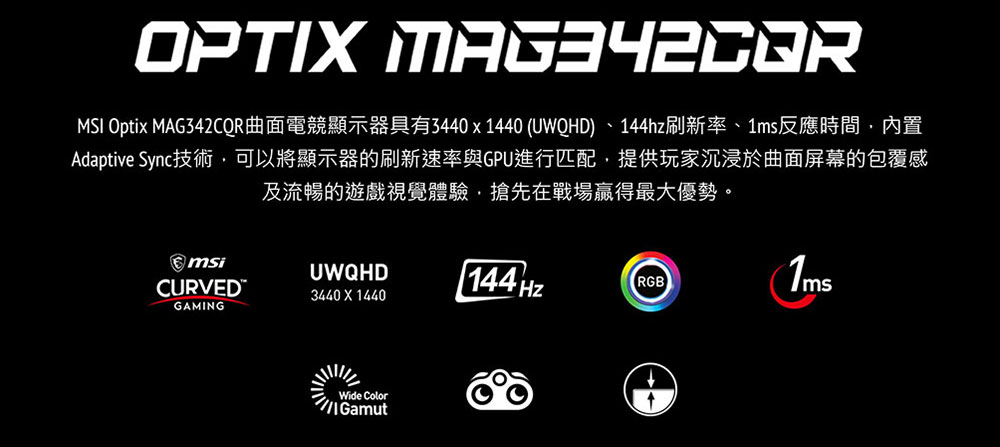 MSI MAG342CQR(2H1P/1ms/VA曲面/144Hz/無喇叭/Adaptive-Sync)電
