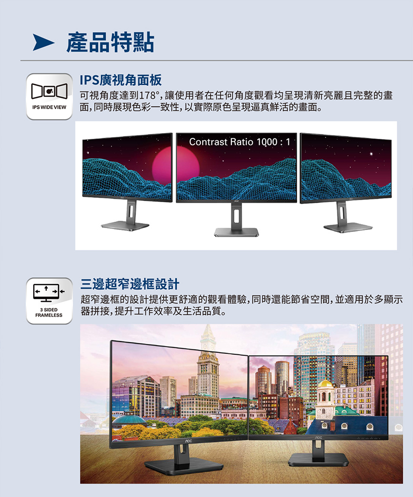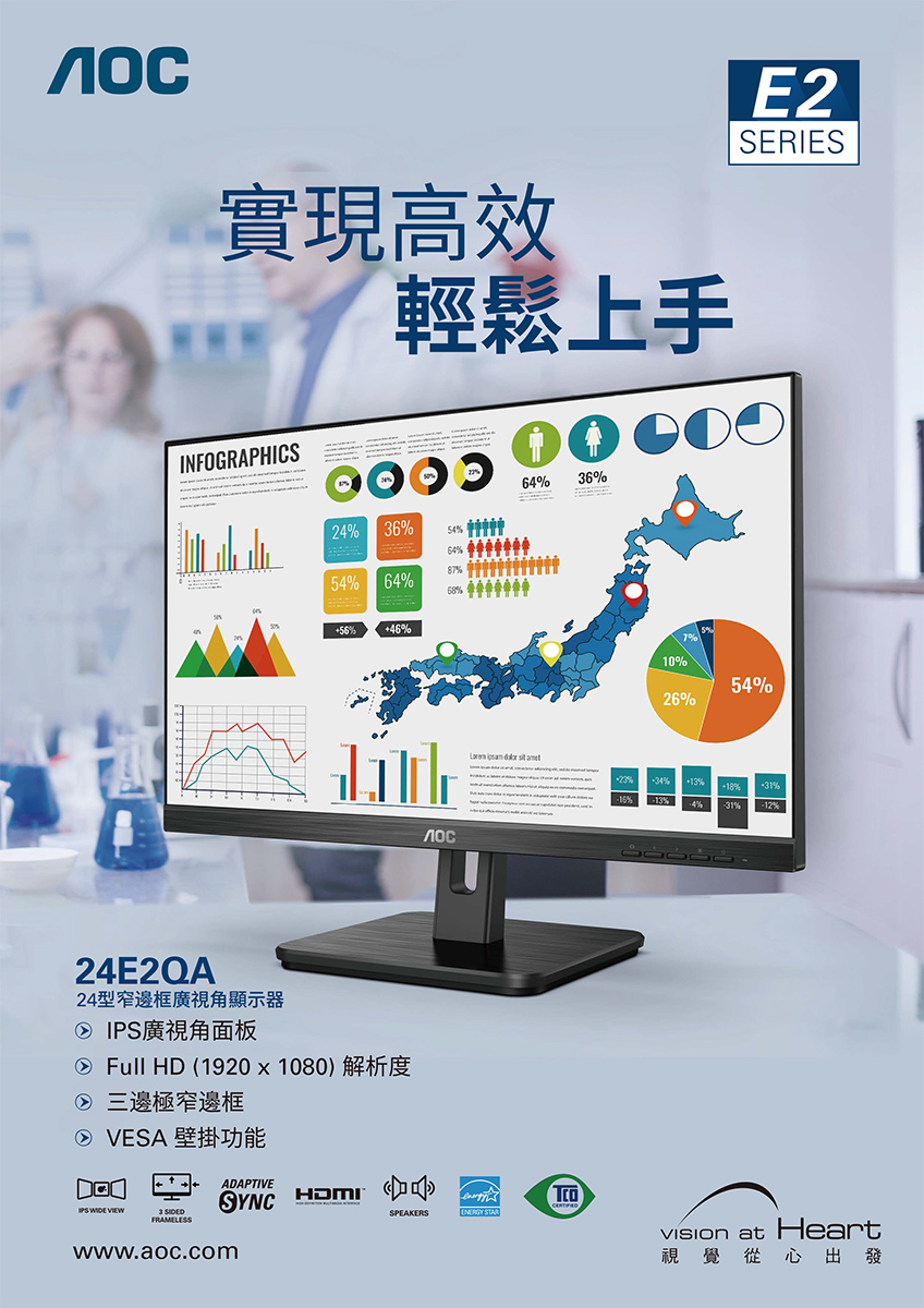 AOC 24E2QA(1A1H1P/4ms/IPS/有喇叭)三邊極窄邊框