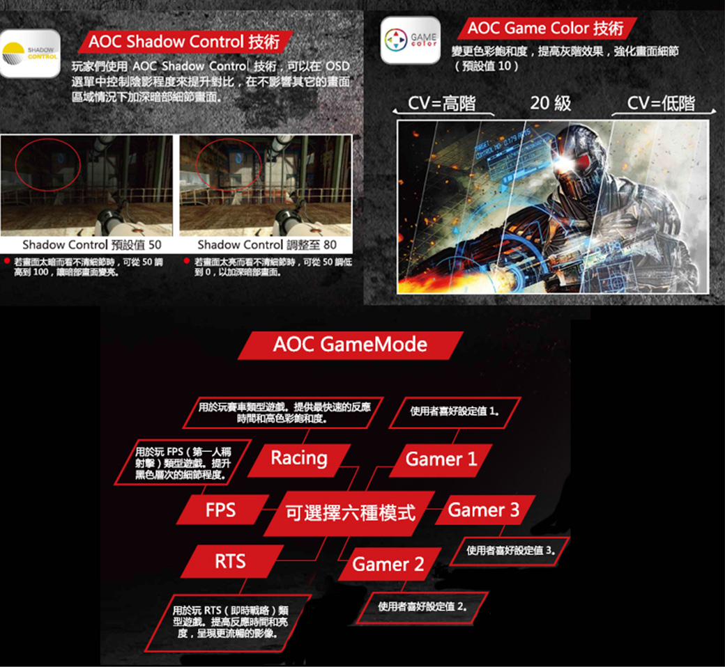 電競模式/黑暗場景穩定器/動態同步模式/十字準線