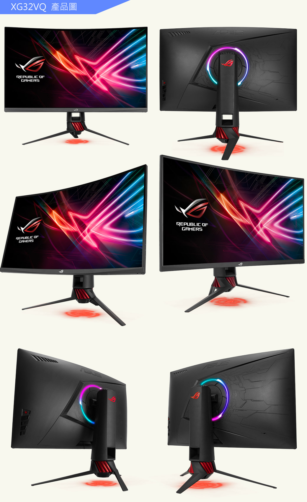 華碩 XG32VQ(ROG/1H1P1MP/4ms/VA曲面/144Hz/無喇叭)