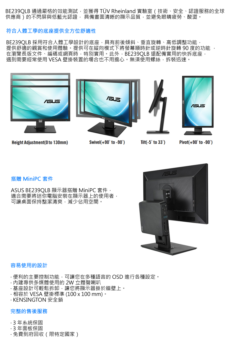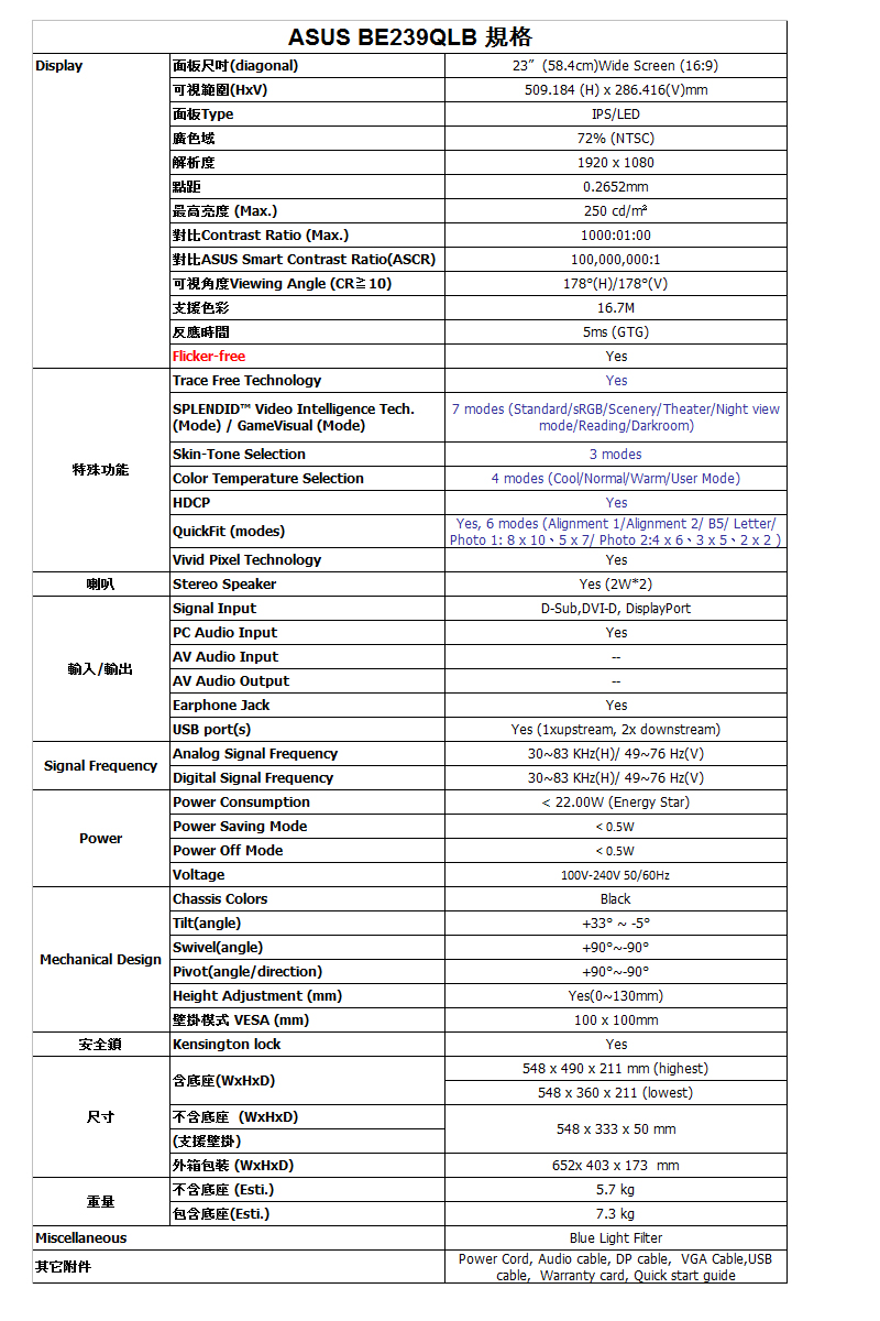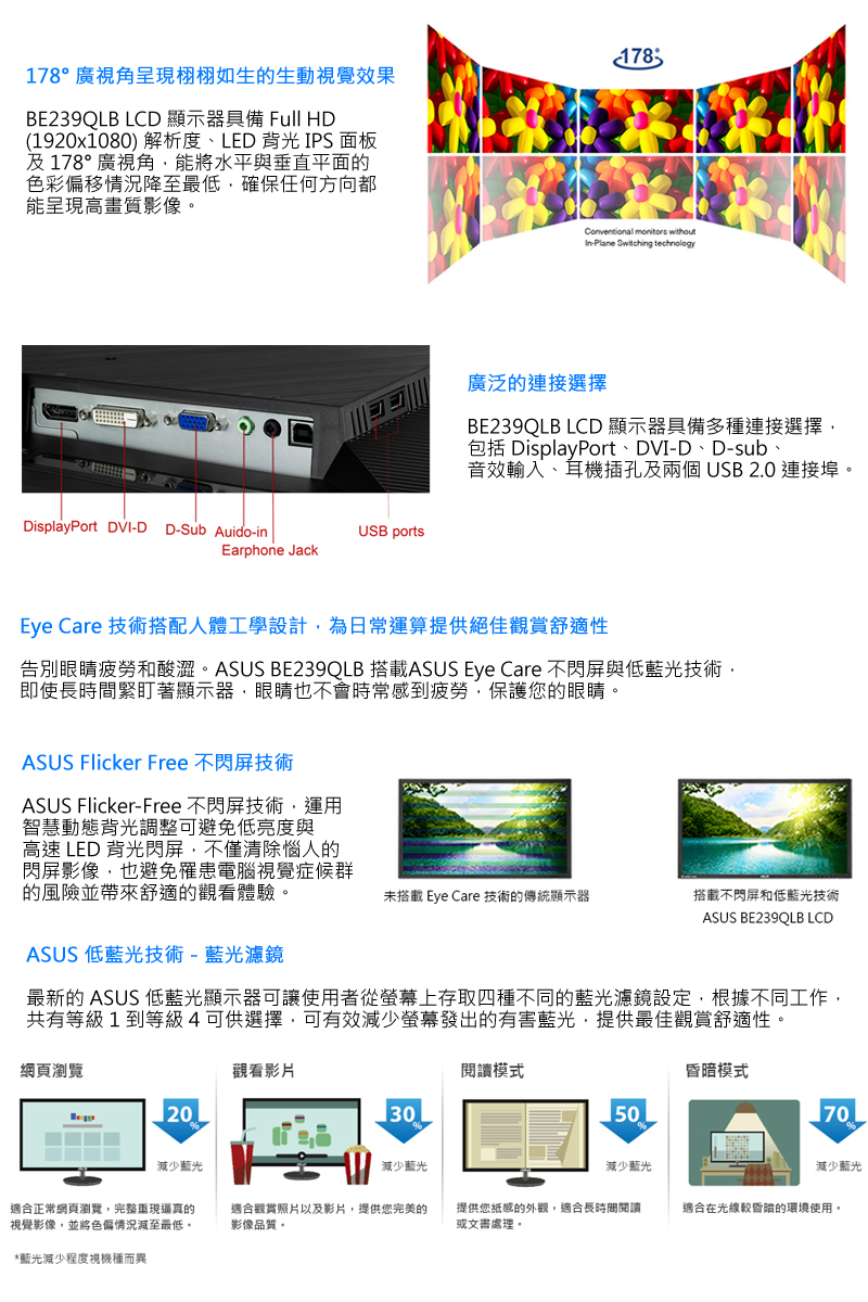 華碩 BE239QLB(1A1D1P/5ms/IPS/含喇叭)商用專業型.超低藍光.不閃屏