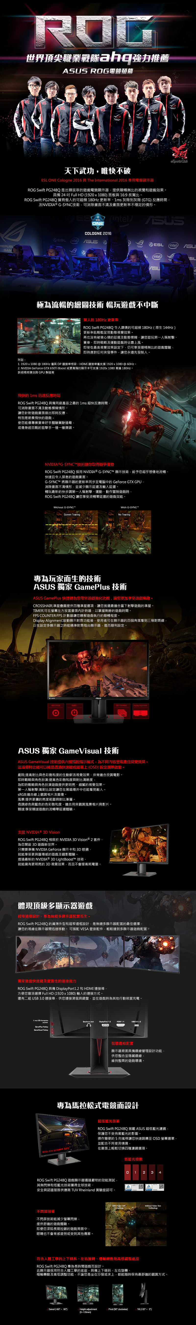 華碩 PG248Q(ROG/1H1P/1ms/TN/180Hz/無喇叭)G-sync*專業電競螢幕