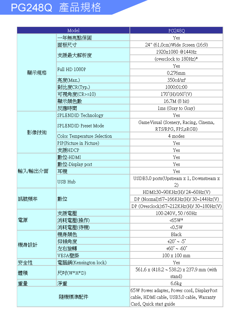 華碩 PG248Q