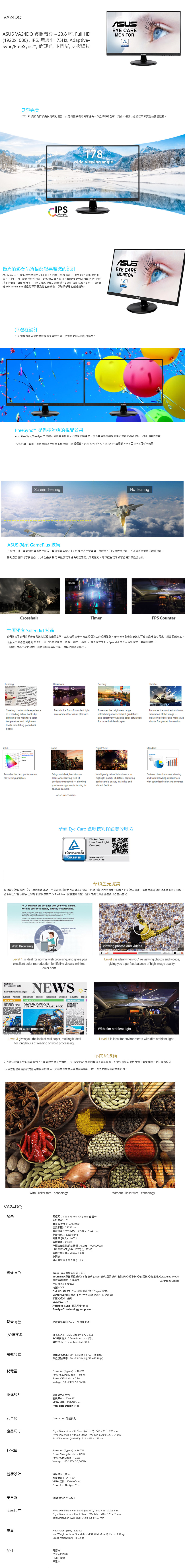 華碩 VA24DQ(1A1H1P/5ms/IPS/含喇叭/Adaptive-Sync)低藍光.不閃屏